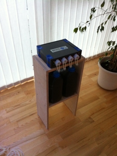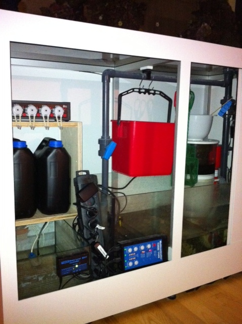 Så fik jeg lavet mig et system til min doseringspumpe og balling dunke, det skulle være lidt hjemmebyg da det skulle passe ned over ferskvandsbeholderen
