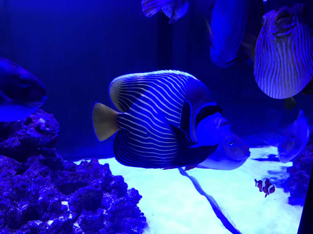 Fodre 1 gang om dagen med ca 500g muslinger og rejer samt tørfoder.