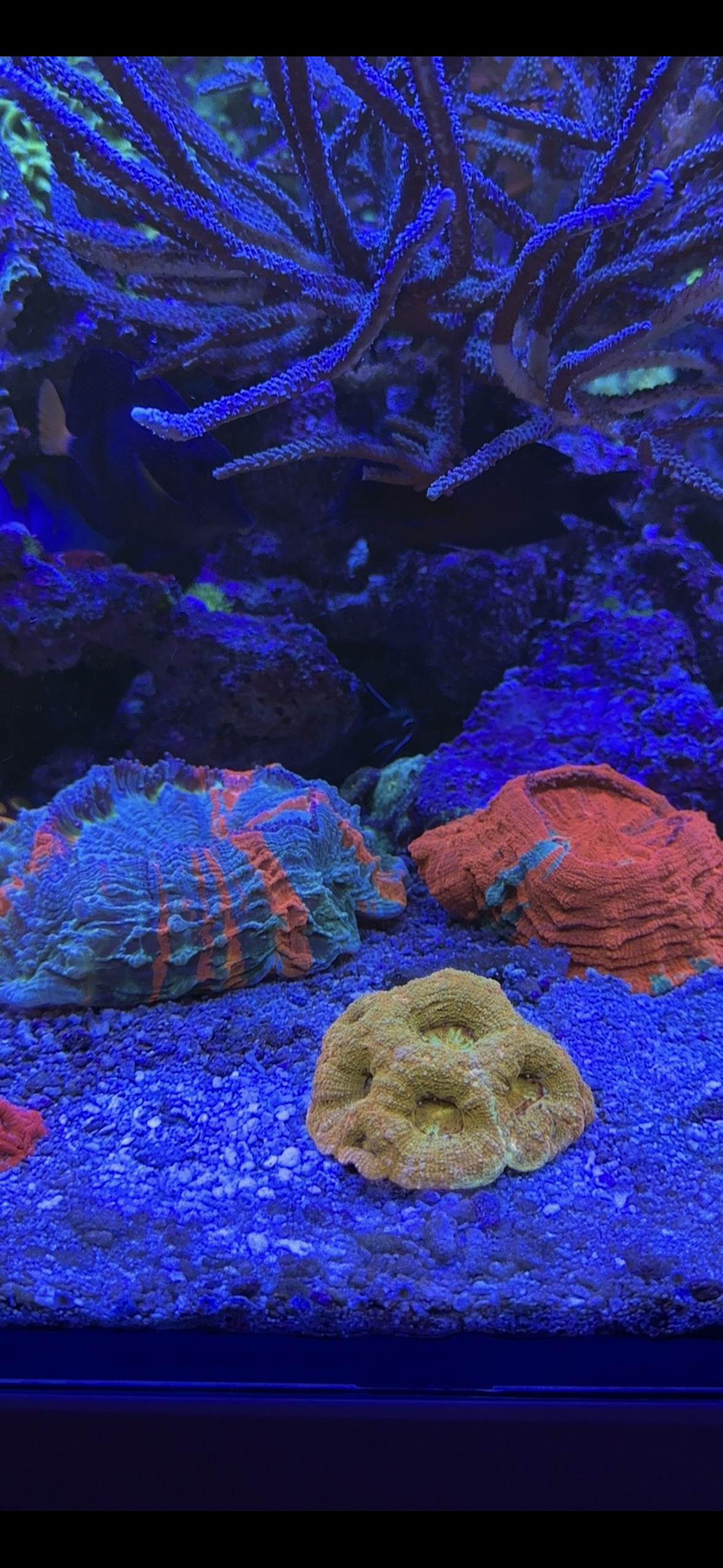 Har du overvejet et par t5 rør som supplement- det ville nok fjerne skyggerne og dine sps ville nok ikke have noget imod lidt retrolys