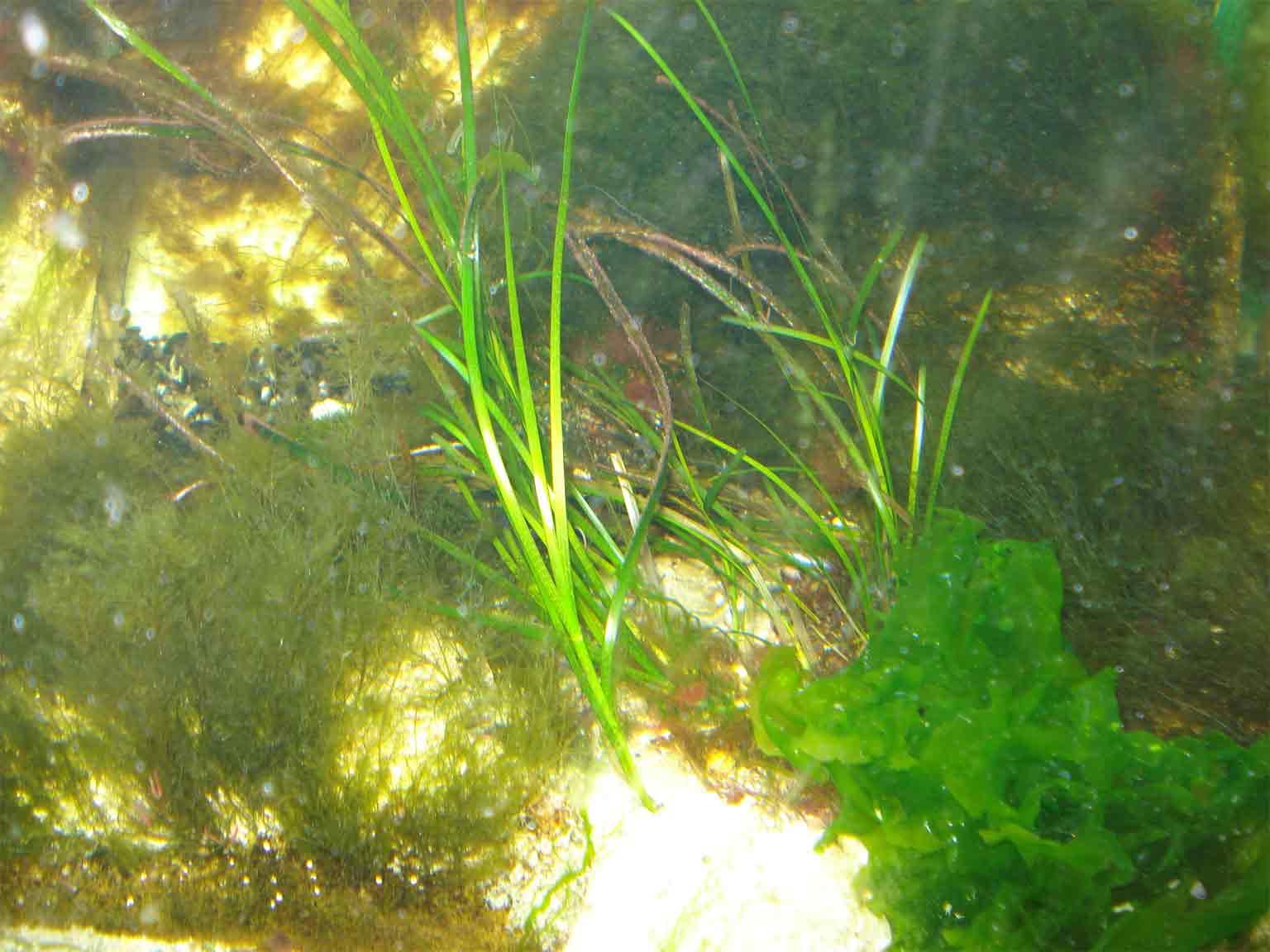 Der er kommet tonsvis af alger i forskellige farver, den flotteste er nok søsalaten der har vokset fra ingenting til 15 cm i diameter på en uge. En ny omgang ålegræs ser indtil videre ud til at klare sig.