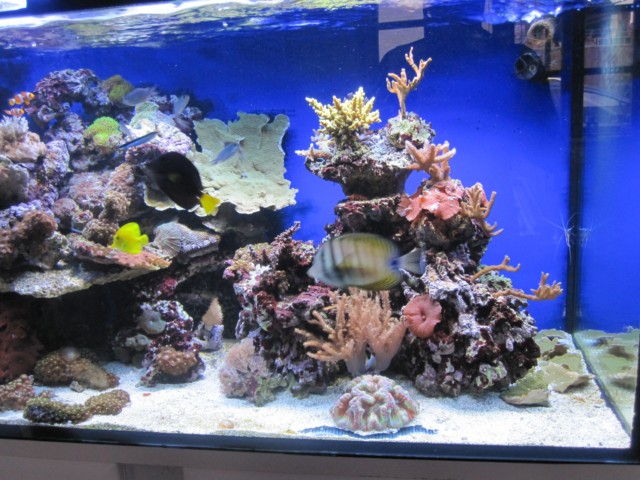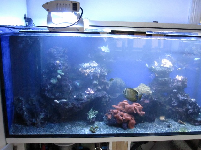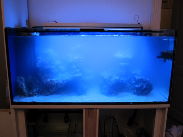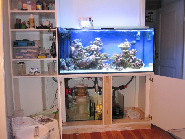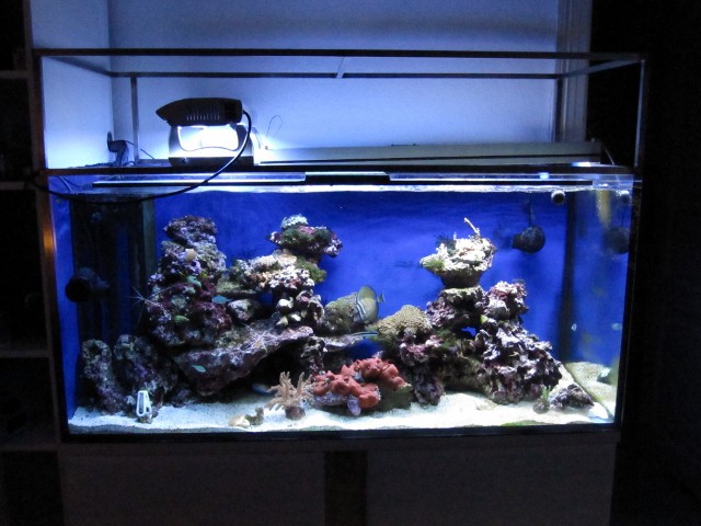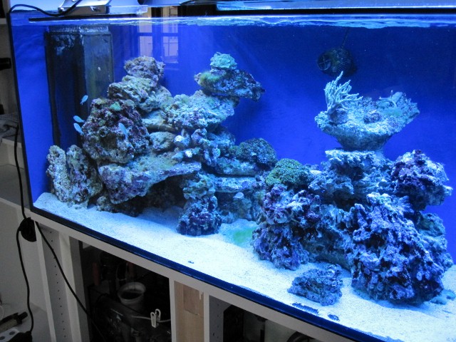 160L akvarie med 54L sump. Tunze overløb. Tunze 6045. Tunze 6015 x 2 . Tunze 9005 skummer. ATI sunpower 6x24w
