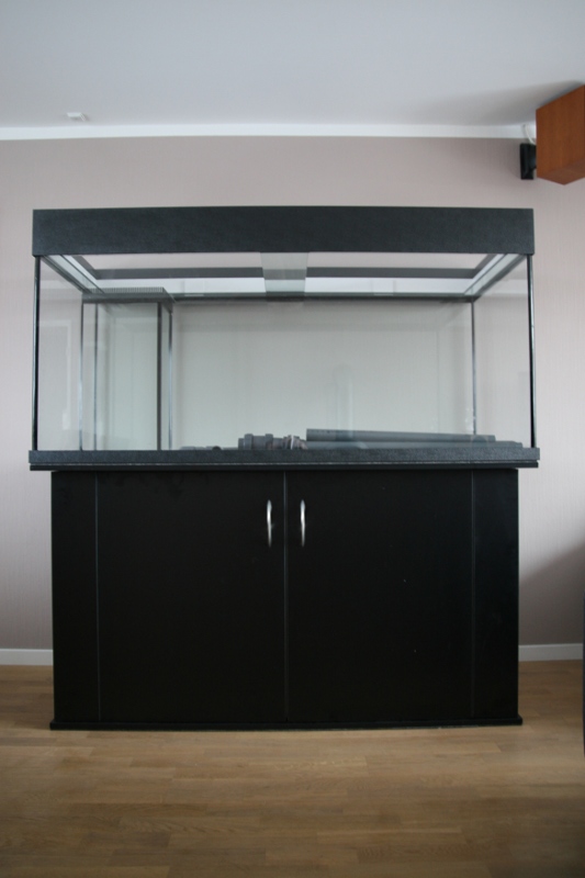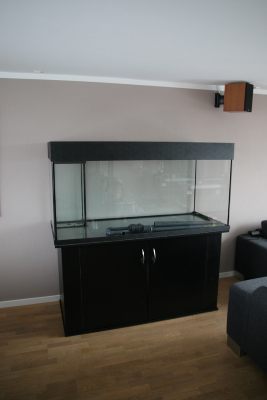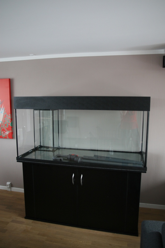 Så blev akvariet endeligt leveret af Brilliant-Aquarium.de, kørt herop af en af deres medarbejdere. De stoler ikke på kurer-firmaer :)