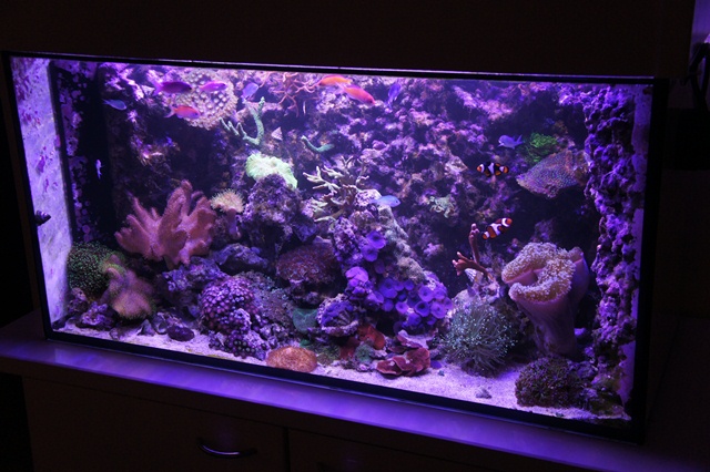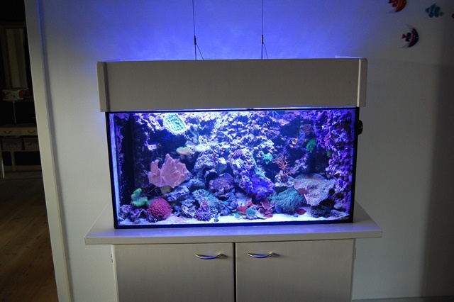 Det er sgu et flot akvarie med dem reef keramik baggrund! Og fedt at se korallernes farver i fuld flor :)