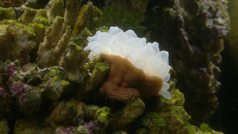 Anemonen har det ogsaa fint, den sidder vertikalt 90 grader mellem 2 sten, men jeg tror den er undervejs lige nu. Saa den har nok ikke fundet sig det rette spot endnu.