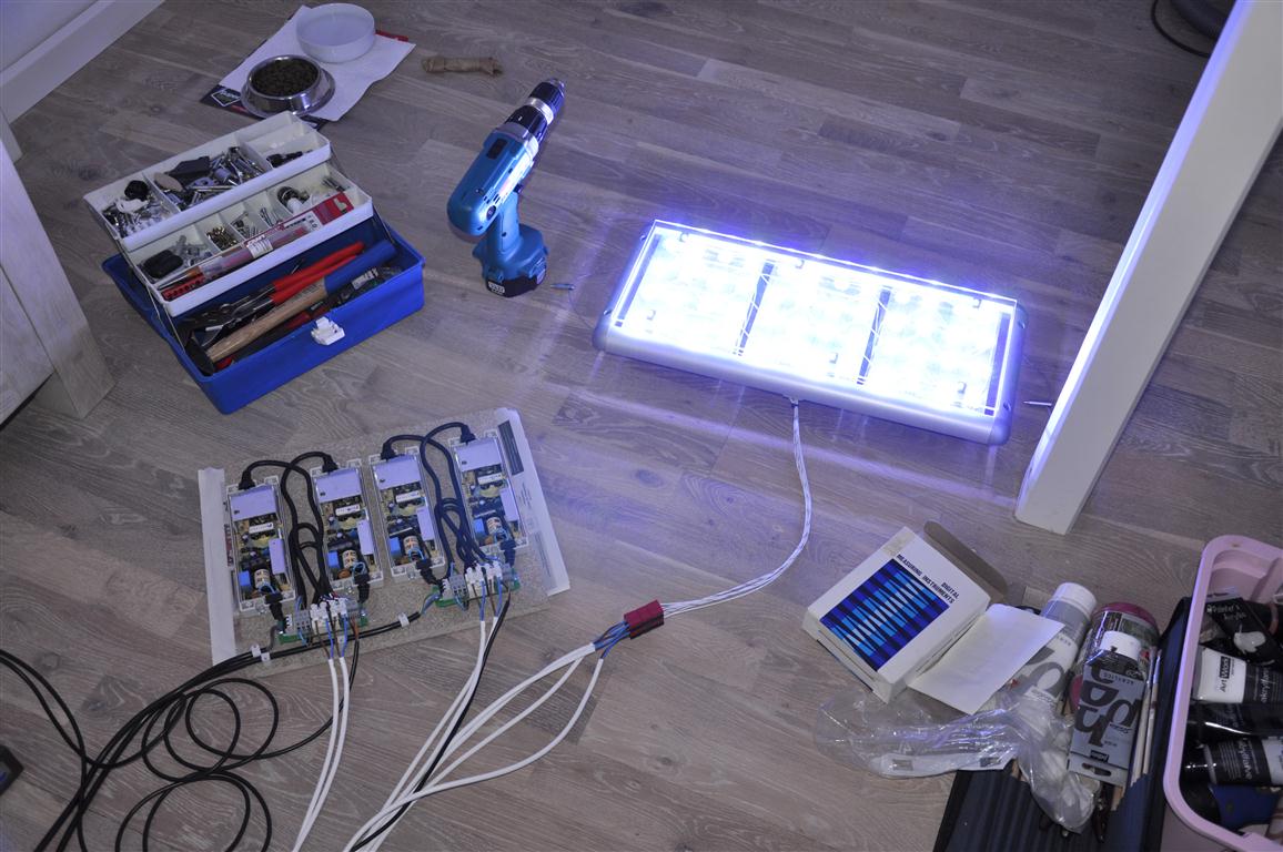 Rigtig flot håndværk du har gang i ;0) vil lige høre hvor dybt dit akvarie er, for efter at have læst din tråd har jeg fået blod på tanden til selv at lave en til et hjørne akvarie, med en dybde på 70 cm, og ved ikke så meget om led og om dem du bruger kan trænge ned til bunden. Men virker til du er rigtig godt inde i det her med led vil gerne have det til at kunne lave sol opgang og ned gang over en iks computer kan man det måske ?