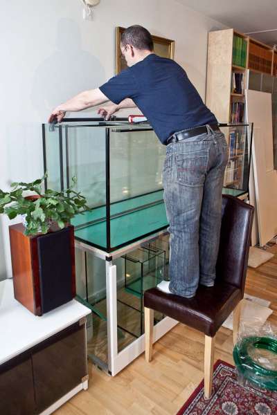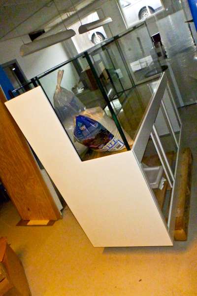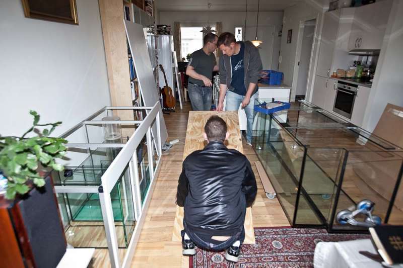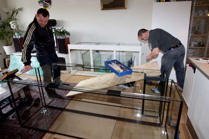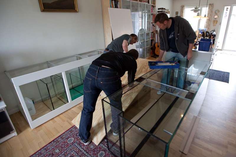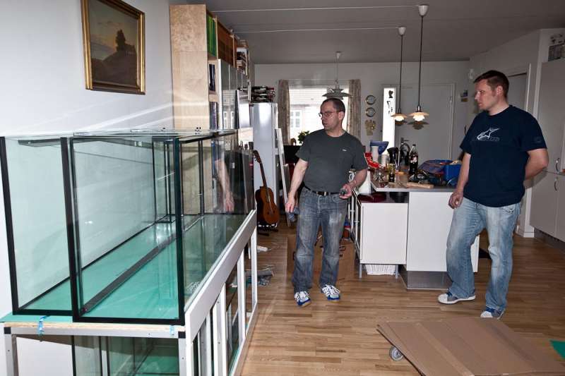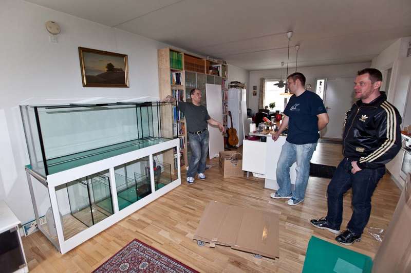Akvariet kommer forhåbentlig hjem i stuen på mandag.