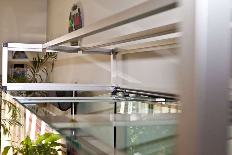 Det var faktisk meningen,at der skulle være elektrisk hævning af lyskassen ved hjælp ar en motor fra et hæve-sænke-bord. Men dette blev droppet, nu hvor der kommer Radion LED lys over tanken,