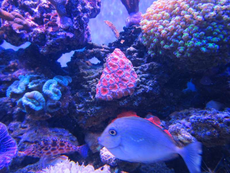 Ser rigtig flot ud :y Lige fra møbel, stenopsætning og valg af fisk og koraller. Det hele ser ud til at stortrives :GO