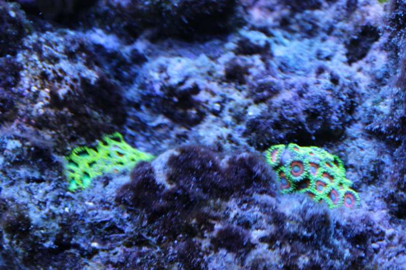 der er rigtigt godt gang i væksten på koralerne, og fiskene er i god stand, de bliver fodret 4-5 gange dagligt, med frost og tørfoder. jeg har ikke noget målbart NO2, NO3 eller PO4. Men jeg døjer godt nok med nogle lange grønne alger på mit overløb, og jeg bruger osmosevand. jeg bruger KH+, Ca+ og Mg+ fra Decocean. som jeg tilfører manuelt plus aminosyre fra grotech. det næste der skal invisteres i er en dosseringsmaskine.