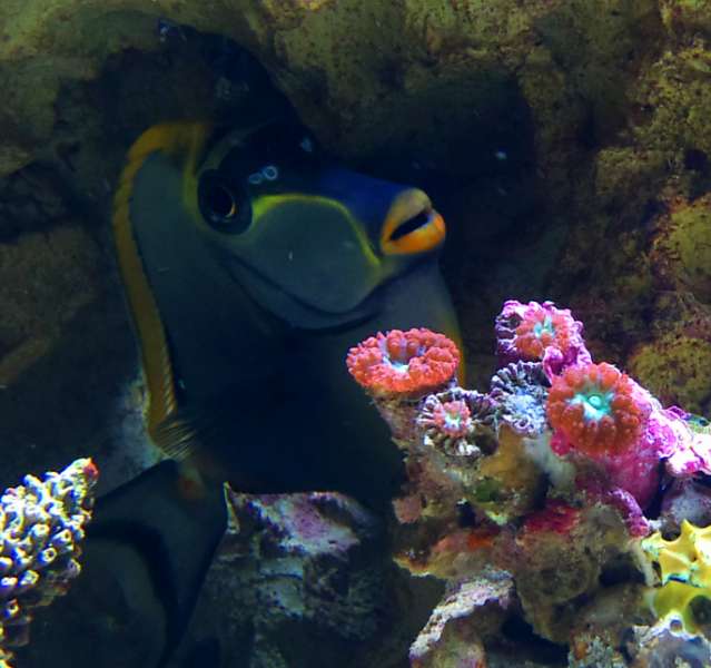 Mine Goniopora har ikke rigtig foldet sig ud endnu, men her er lige et billed af min Naso XL. :biggrin: