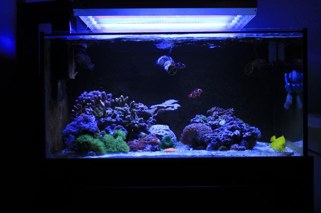 160L akvarie med 54L sump. Tunze overløb. Tunze 6045. Tunze 6015 x 2 . Tunze 9005 skummer. ATI sunpower 6x24w