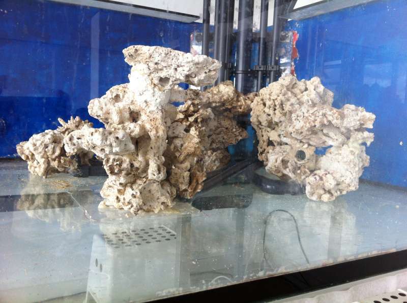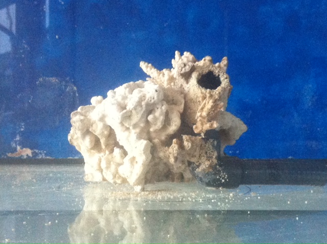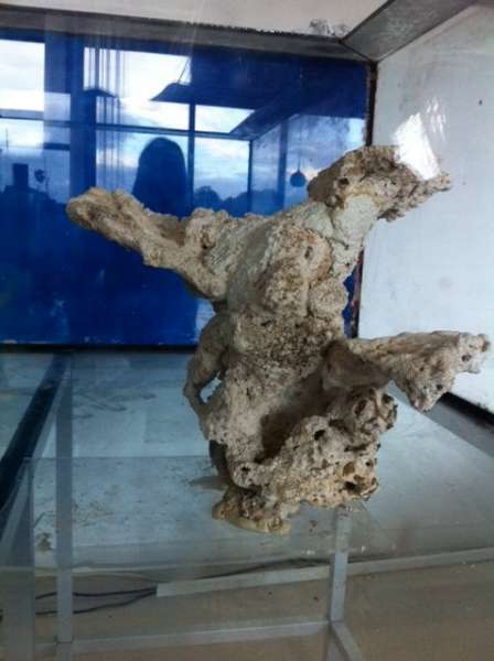 Her er lidt billeder af to af stenene der skal bruges som udblæsninger foran i akvariet. En søjle og en mere flad sten der udelukkende skal bruges til skiver og polypper. (Kompromisset hvor jeg endelig fik lov at få mine Florida skiver og polypper uden den store fare for at de breder sig i hele akvariet. - Kristoffer er ikke ret meget for de blødere arter ;) )