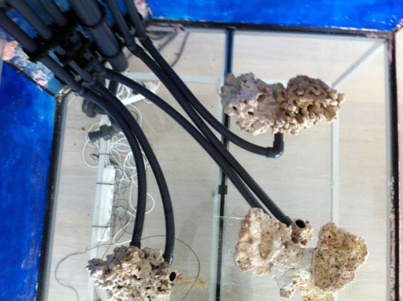 Så begynder rørføringen også at blive lavet på OM. Nu skal slangerne bare på og kobles til rørene i akvariet.