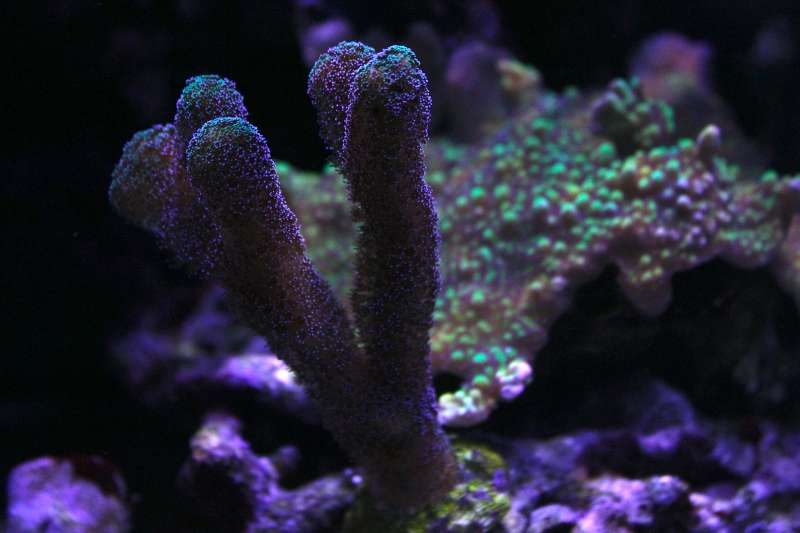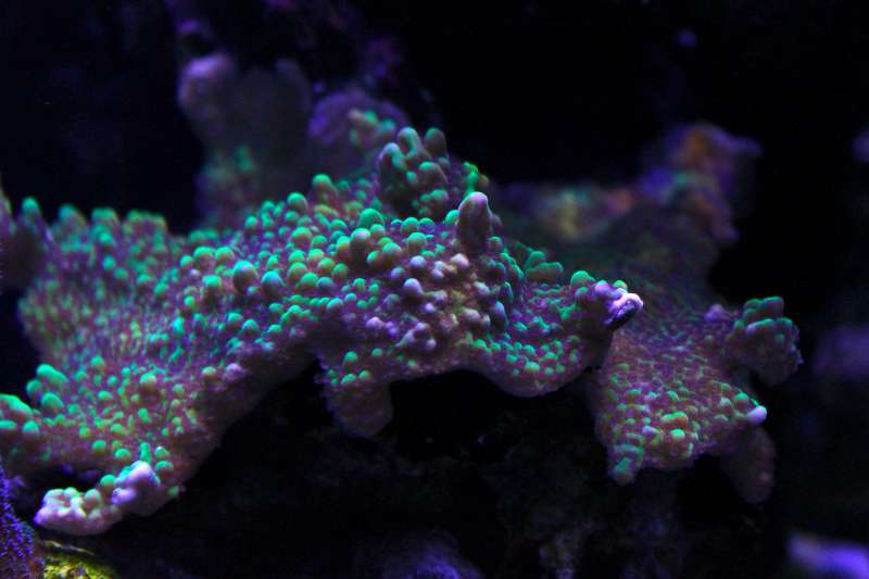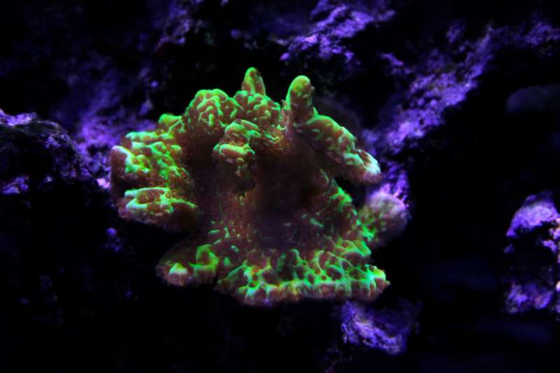 Det ved jeg nu ikke rigtigt. Da jeg fik korallen blev den jo hurtigt PIV bleg, på det tidspunkt var min n = o og po4 næsten nul. Så fik jeg hævede N og den fik det bedre. Faktisk fik jeg hævede n en del for meget og den havde den fantastisk. Nu ligger min nitrat på 2,5 - 5. Undervej har jeg dog også skiftede til Maxspect kører lamperne kl 75 og 85. Hvid og blå.