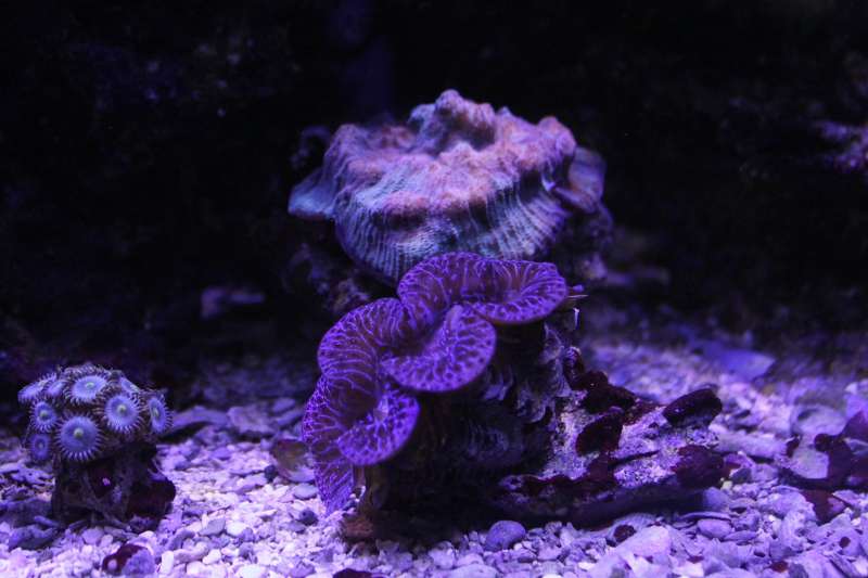 Her går det super godt med stor vækst på alle koraller , har ikke haft nogle problemer længe har dog rykket alle Lps over i min frag balje da de står pænere der i fred for diverse fisk , og så er de også nemmere at fodre.