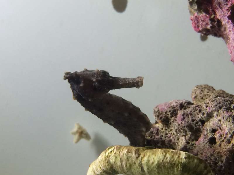 Nu har jeg jo et par akvarier og da så min datter ville have heste(søheste) mente konen da ik det var noget problem så hun sagde "hvis du må for far er det ok", så Stalden har være noget kedelig at se på kun med glasrejer (Paleomonetes.sp)og snegle i, men nu er den modnet og rørorme og alger har fået godt fat og idag er de fine heste blivet hentet og de er ved at undersøge deres nye tank.