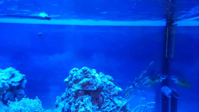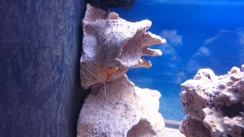 [center]Så er alt det levende kommet i akvariet, og korallerne er limet på deres plads. En af Dannebrogsrejerne bærer på unger (taget med mobil - Sony Xperia Z3)[/center]