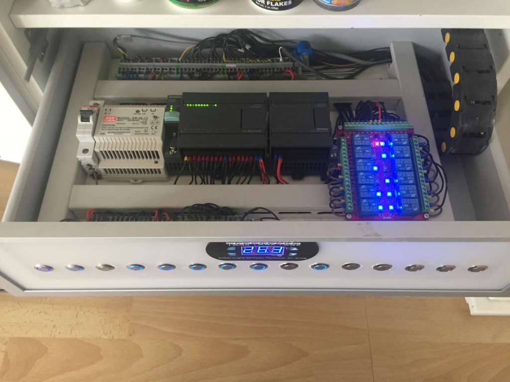 Akvariekomputer: DIY PLC styring til styring af varme, osmose, doseringspumper og lys over sump.