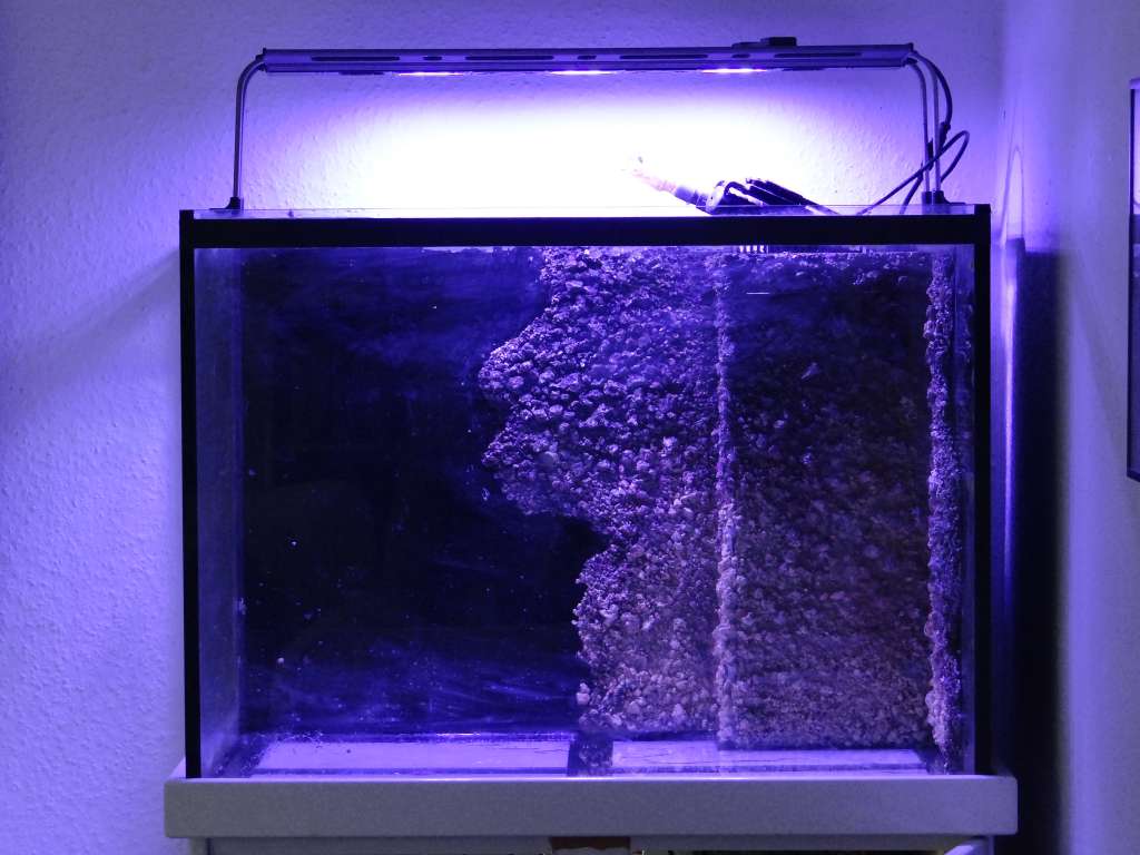 3 nye tørlagte søjler, hentet i Silkeborg i sidste uge, blev sat i akvariet og der blev fyldt 180 liter nyblandet saltvand på.