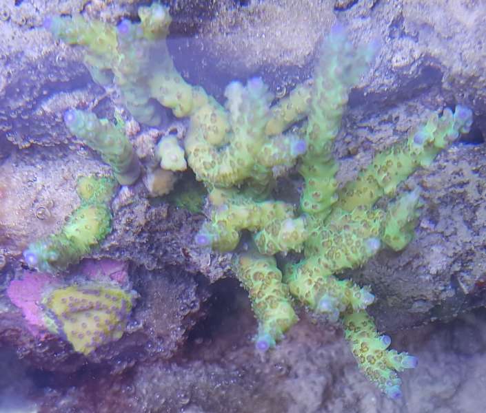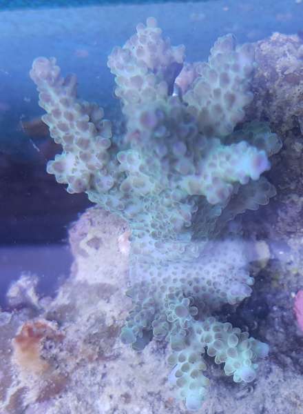 En anden mulighed kunne også være en Blue Staghorn - Det er dog en tynd antagelse. Kan du evt tage et billede tættere på, så vi kan få et kig på polypper / coralitter?