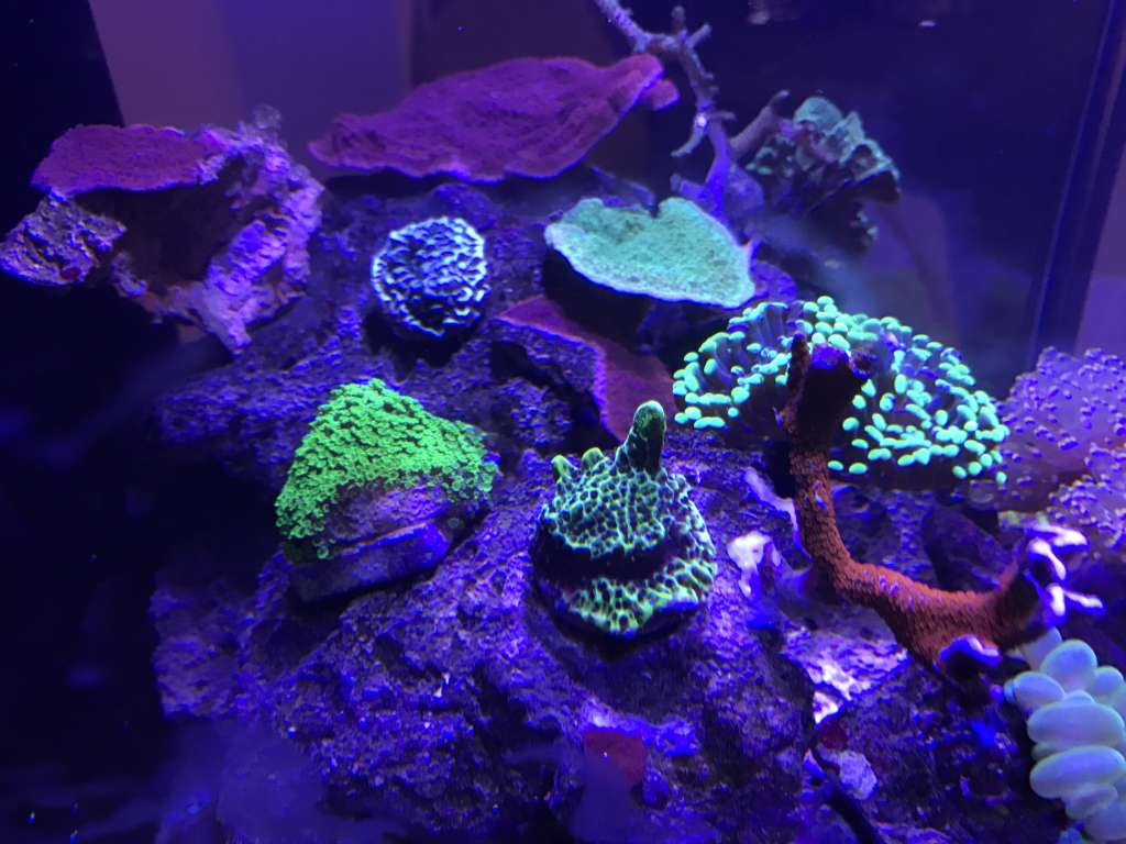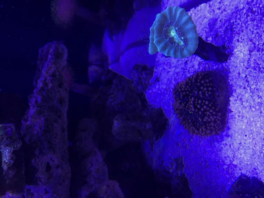 De første blødkoraller, zoa og lps er kommet i, og trives, bortset fra en enkle hammer den ser lidt sur ud. Mangler stadig min ønskede skimmer, men for nu kører jeg forsat med min tunze9001.