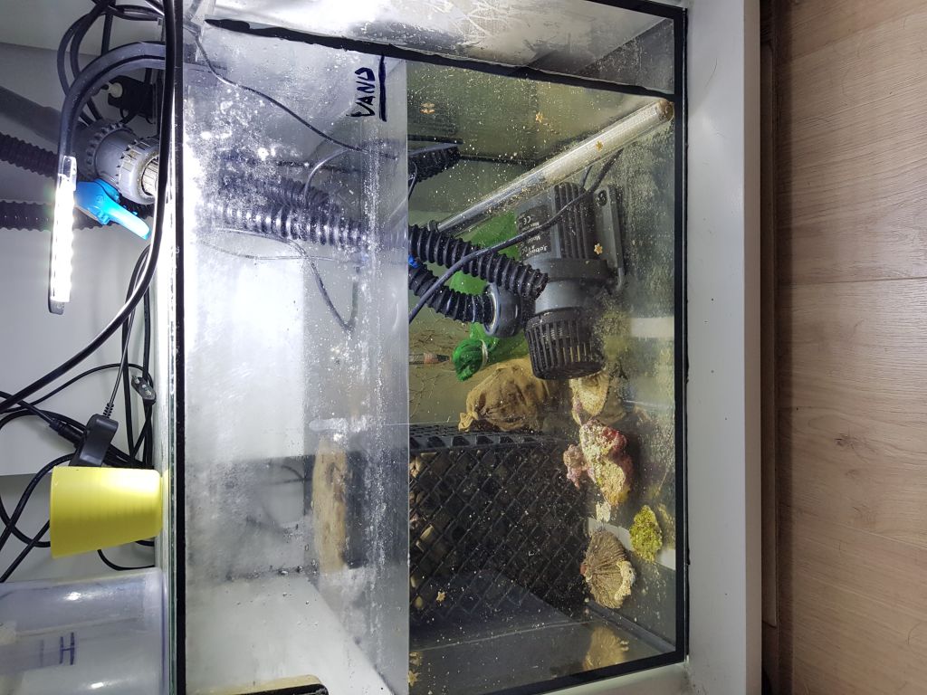 Sumpen blev så droppet og det originale indvendige filter blev slagtet og fyldt med siporex, aktivt kul og fosfatbinder - så må vi se hvor længe det kører. Jeg vil prøve at bakke lidt mere op om vandskiftet.