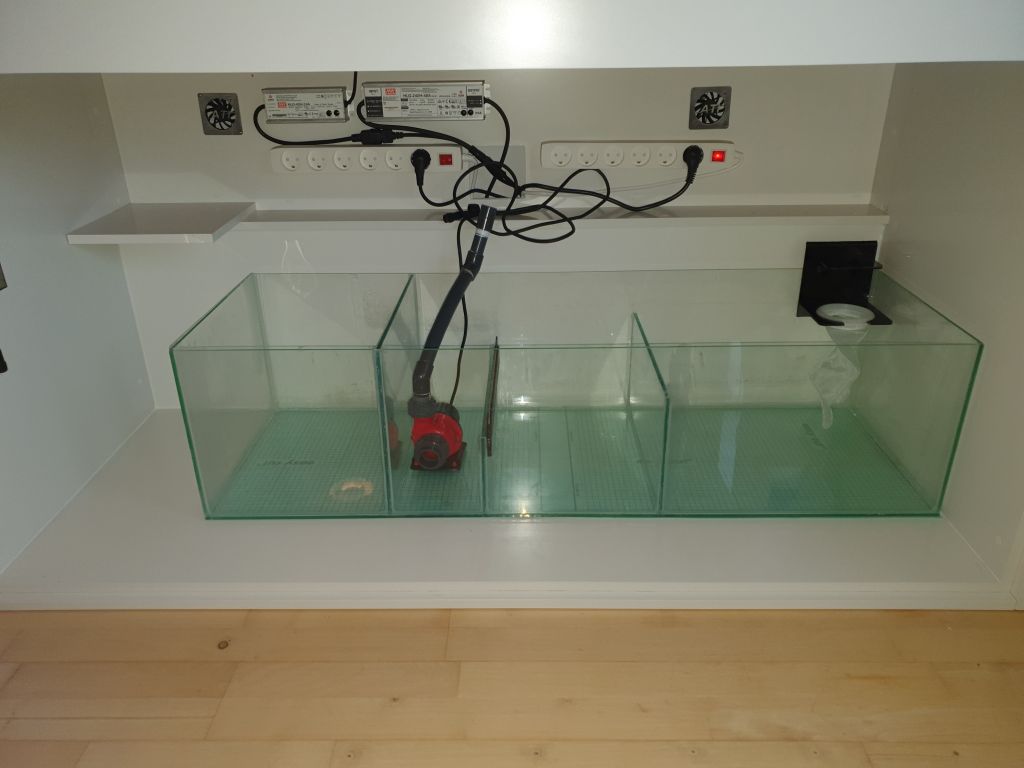 Et osmosekammer på 30 liter (som kan klare en lille ferie) og et kammeret mellem skummerrum og returrummet er tiltænkt mine fragtmenter