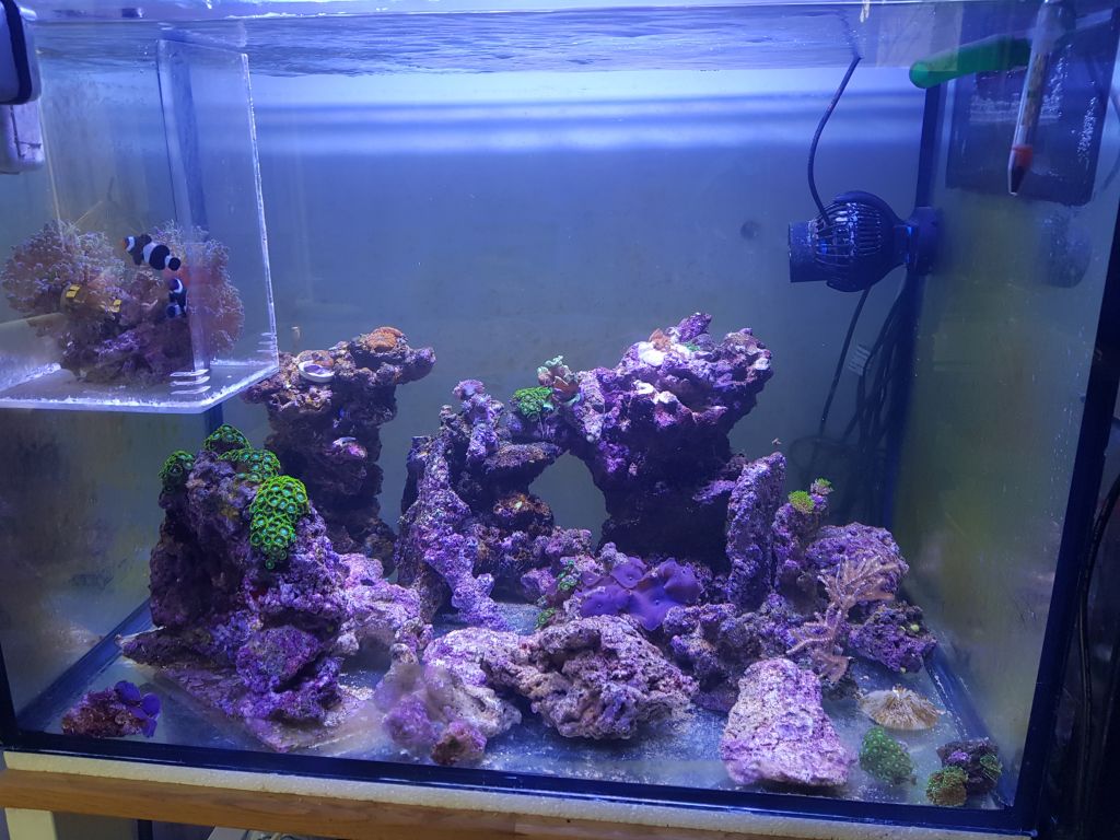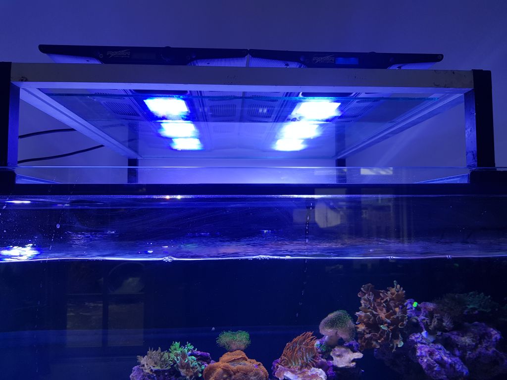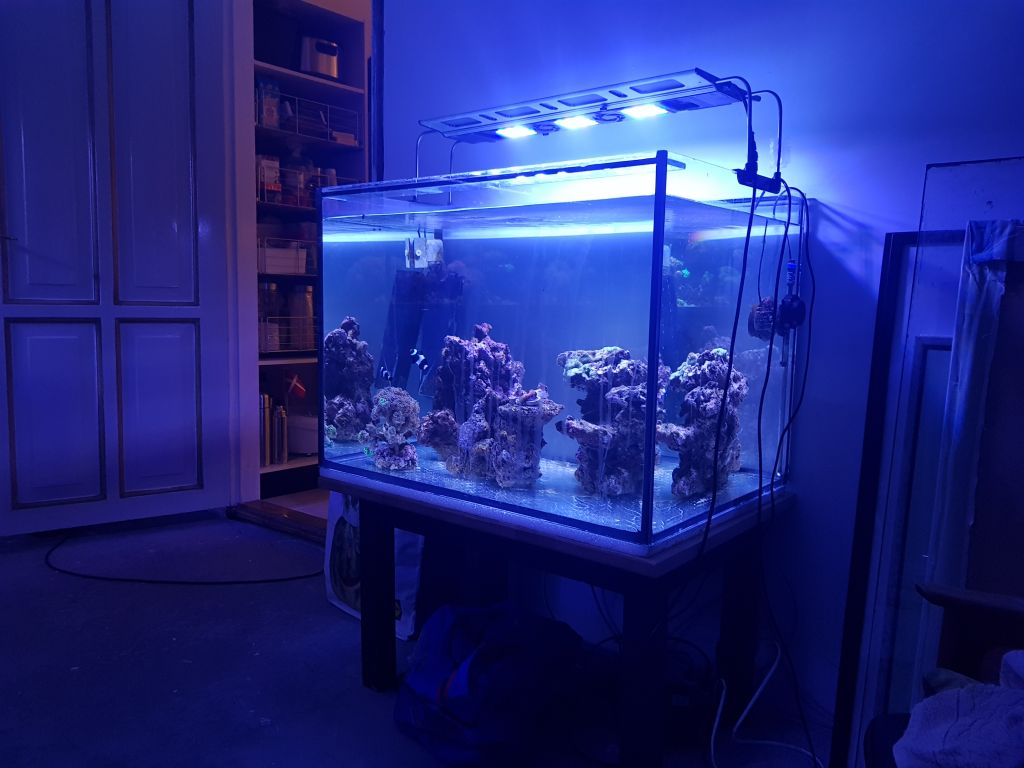 Aquascaper 900 akvarie(182L) GHL Profilux 4, KH Director, Doser 2.1SA, 2x Rossmont MX 11600, 2x AI Hydra 26HD, Reefbot, Tunze 9012 DC skummer, H2ocean P4 Pro Doser, Tunze Osmolator, Mastertronic.
