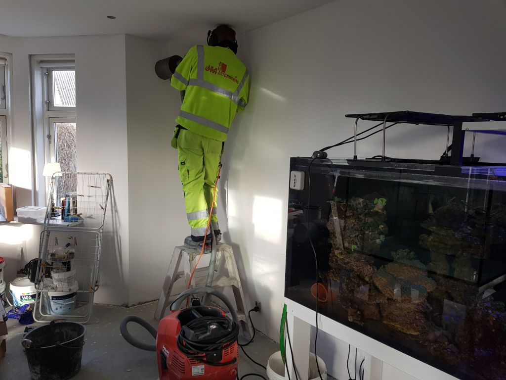 Så blev der boret 170 mm hul og monteret duka ventilation.
