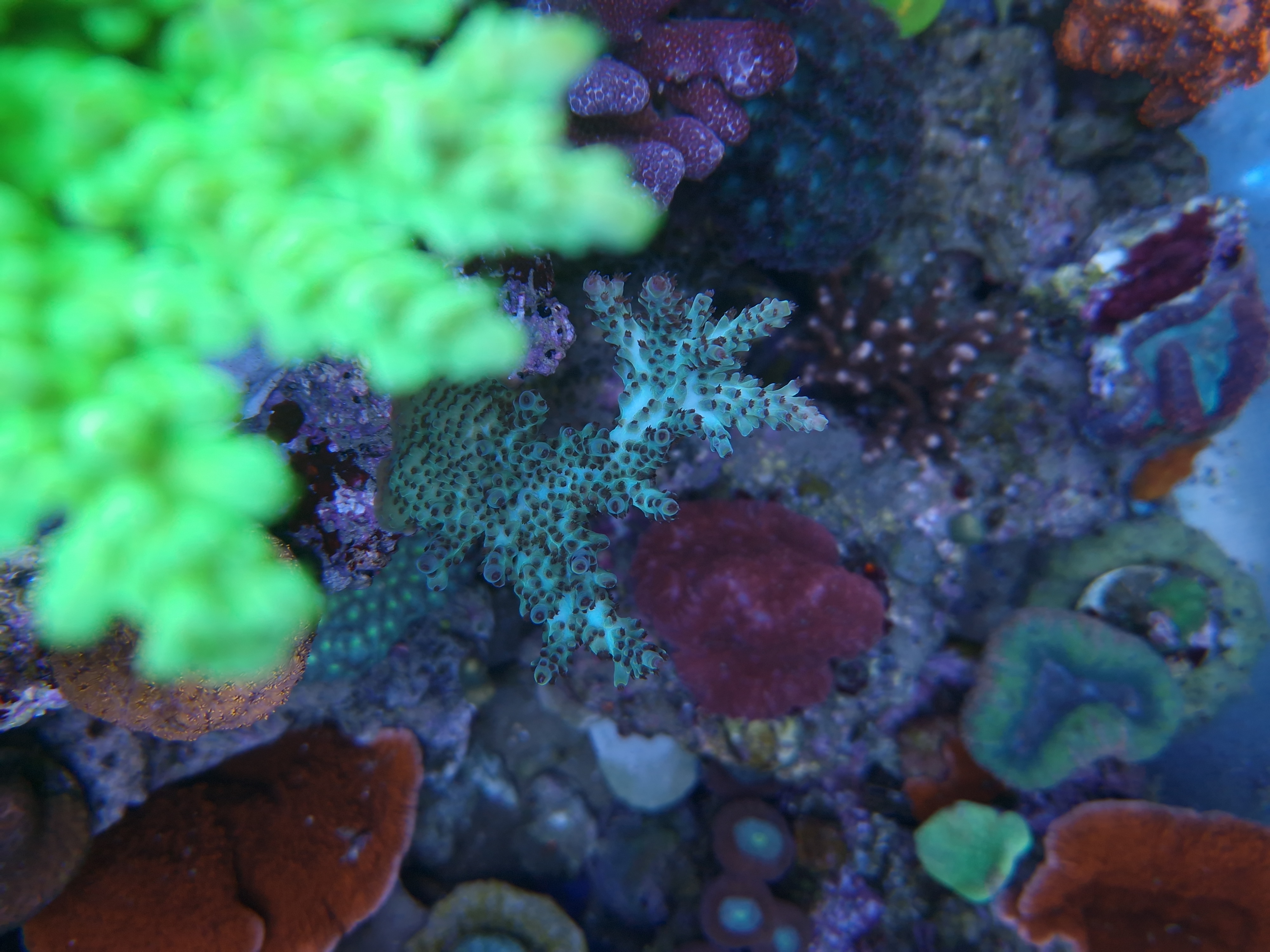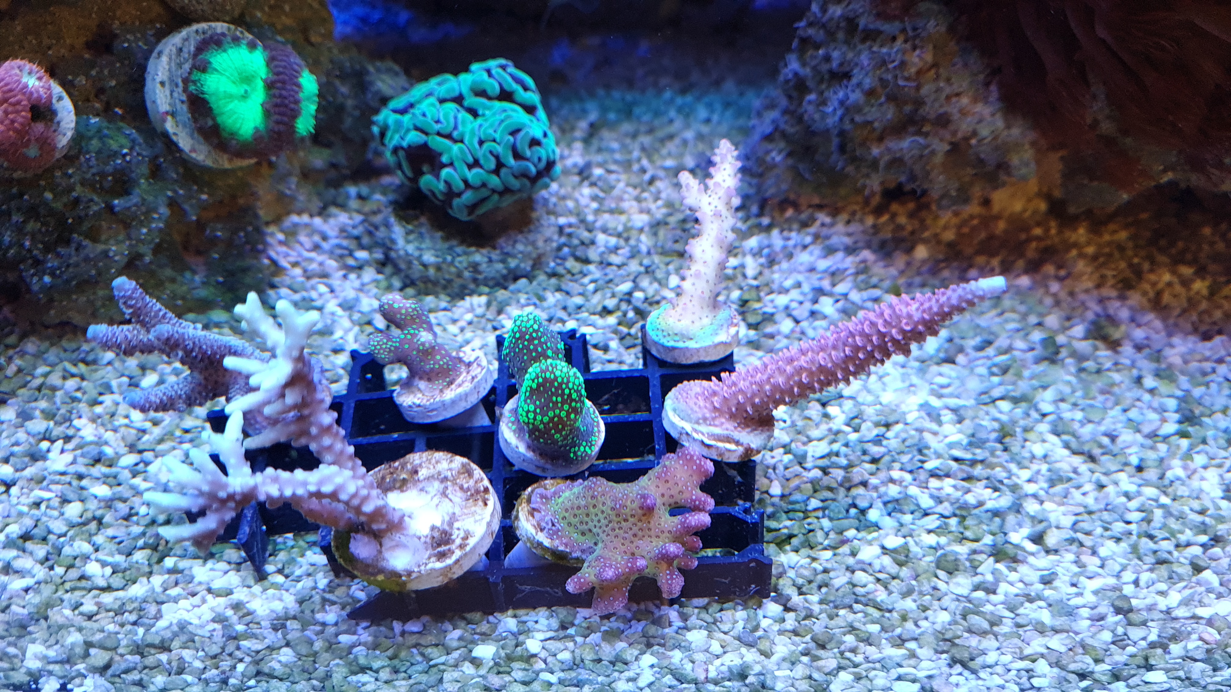 Ja alt trives selv den nye Montiporaen og birdnest - selvom de er brune så vokser de.