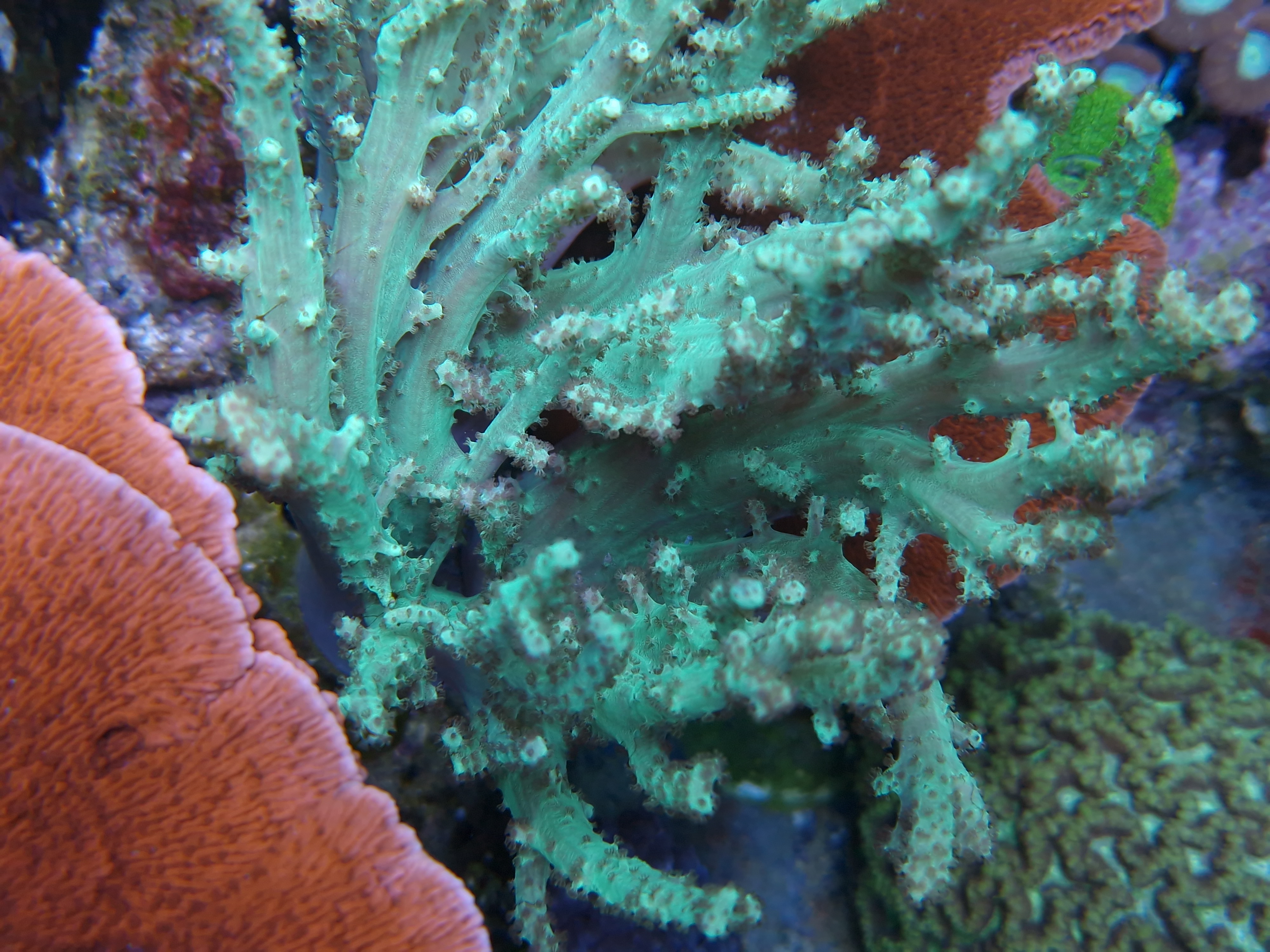 Lille update fra Silkeborg. Midt i og på trods af byggerodet, babyrodet, akvarierodet og mit rod så vokser korallerne stadig derudad.