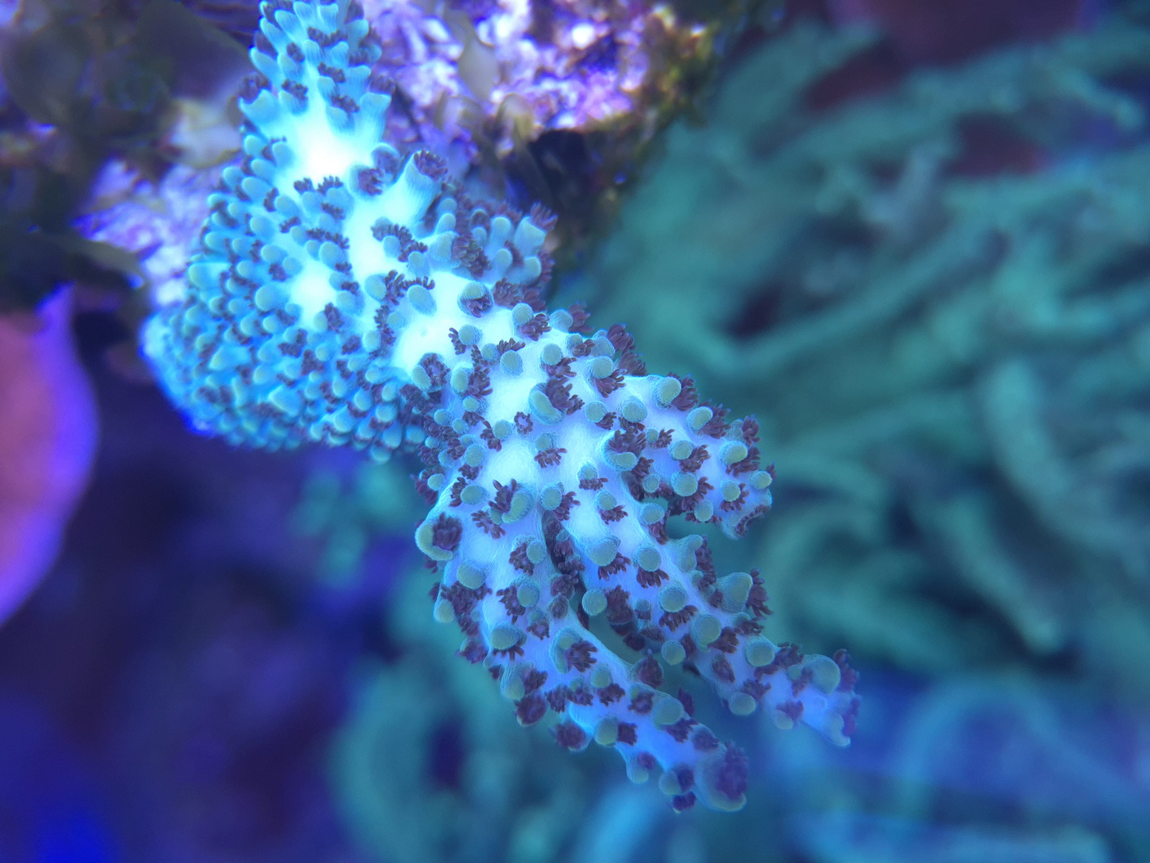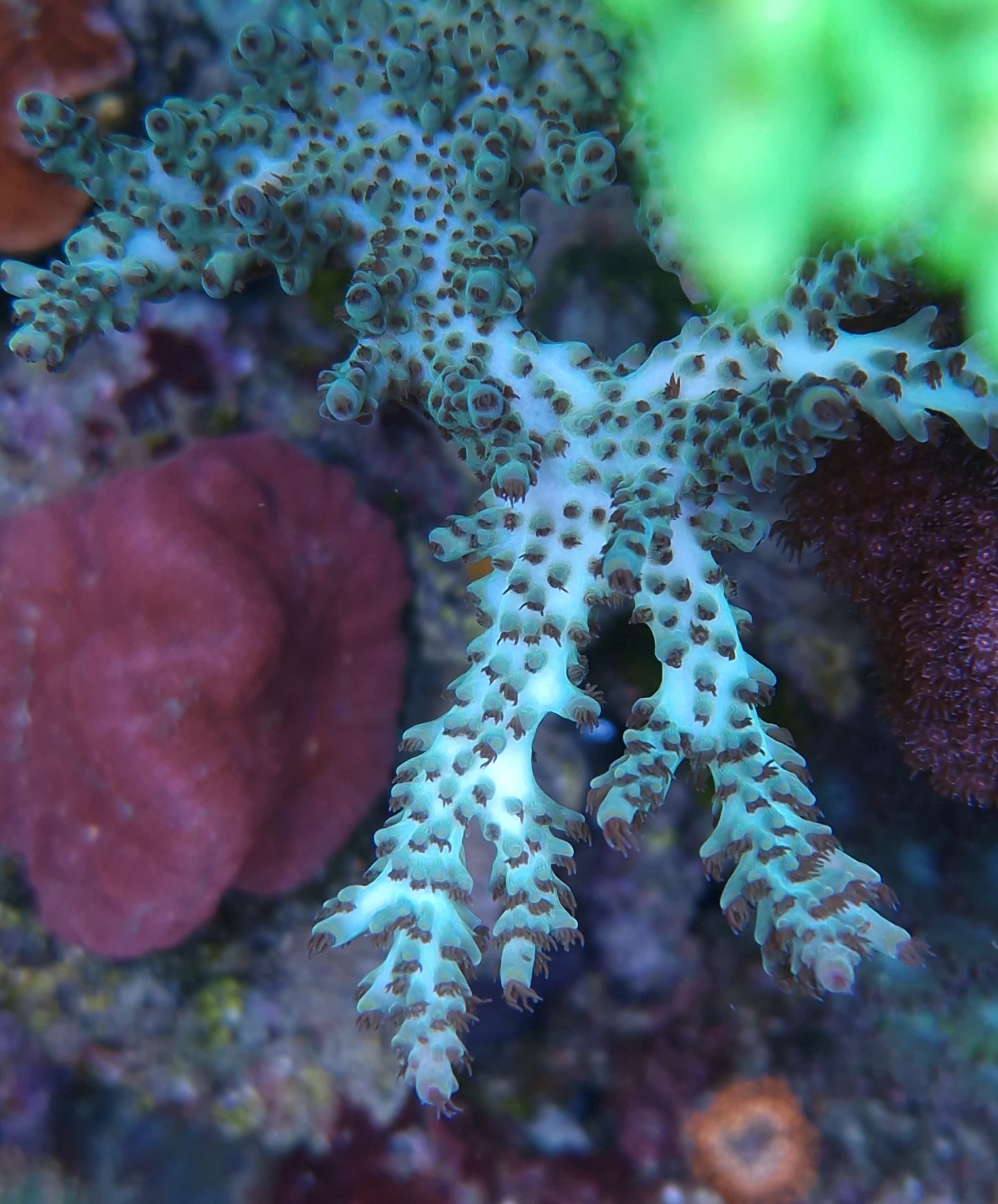 Acropora Willisae ser bedst ud. Så jeg har fragget et stykke af og placeret i et absolut angreb af