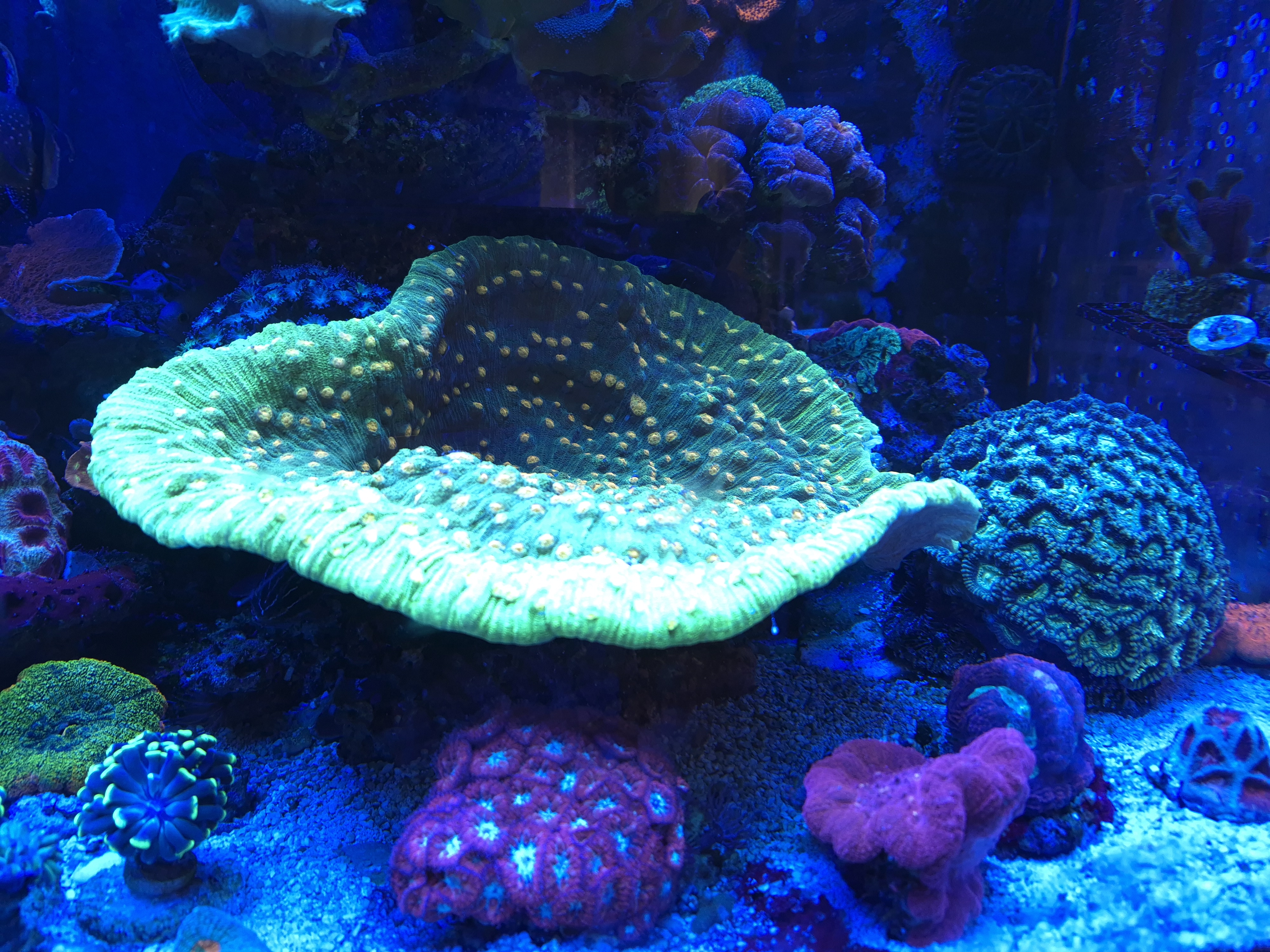 Lobophyllia garden. Udfordringen er at "lobophylliaerne" er håbløst u-dokumenterede i deres genetik og det jeg køber som "