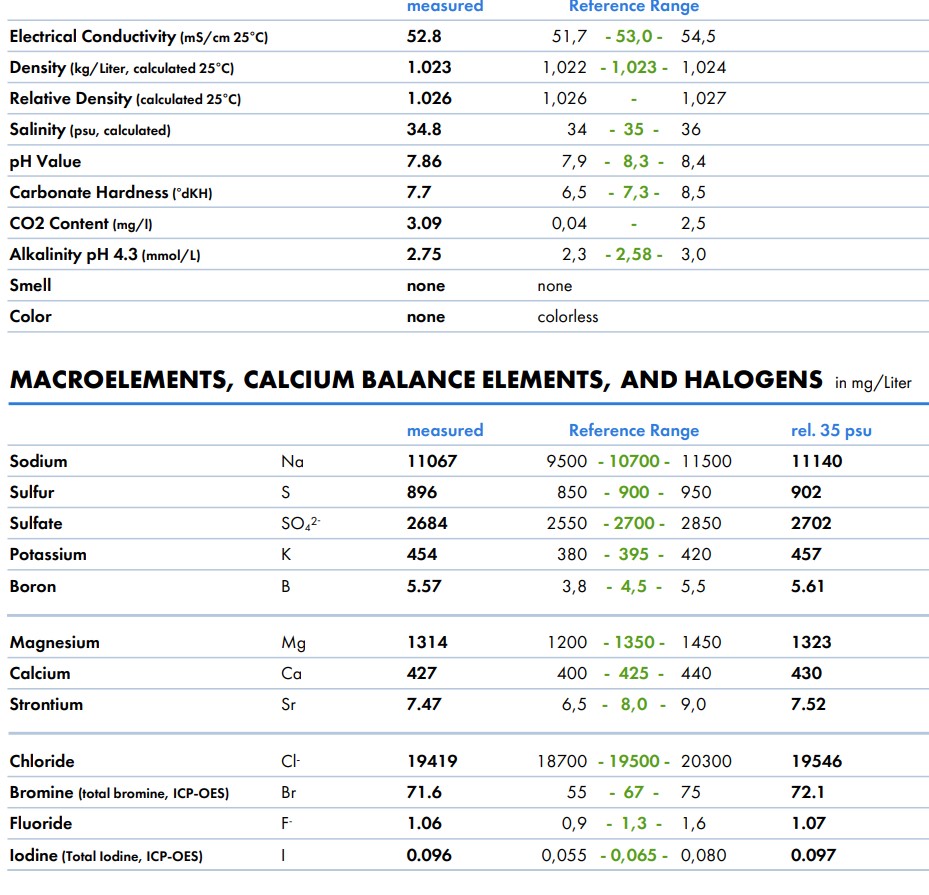 EDIT: Tilbage i 2022 tror jeg der blev brugt en spand med Red sea, når jeg tænker tilbage, da jeg flyttede akvariet. Kan husk en fra aquaforest ICP viste lav i den periode, men rettede sig op til ovenstående da jeg kom tilbage til det gode :heart: