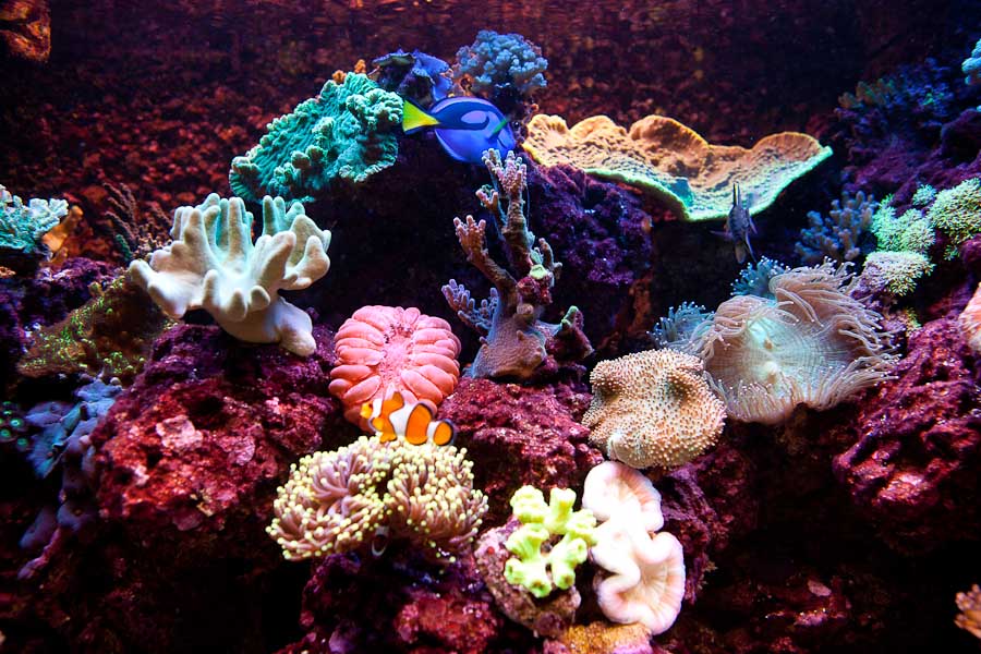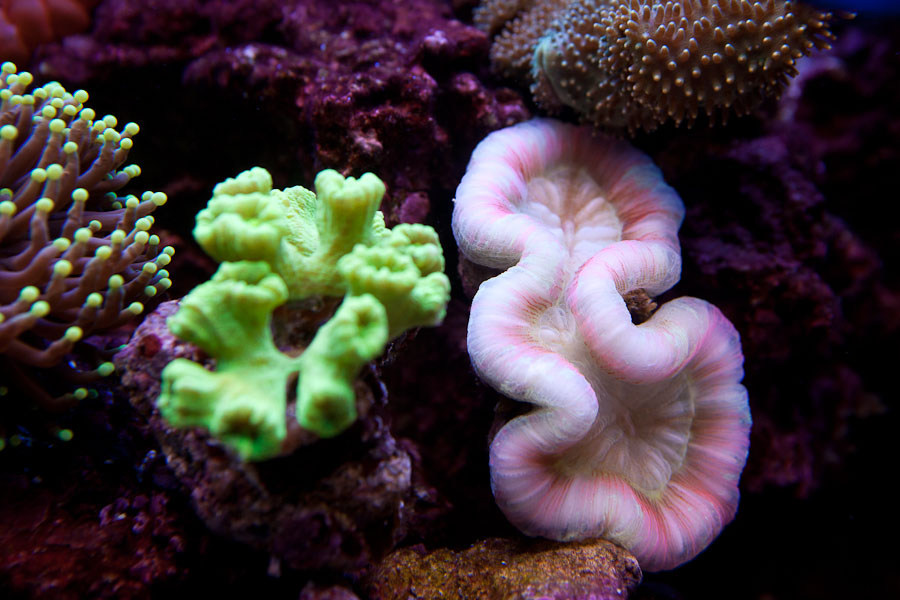 Så er her lidt billeder fra akvariet. Efter et noget kedeligt, men særdeles lærerigt efterår med sygdom og en del døde dyr, er bøtten vendt og der er enda kommet tre nye beboere i tanken. To almindelige og lidt små klovne samt en foxface. alle fiskene trives og selvom vi fodre minimalt, er fiskene i særdeles god foderstand. Der er simpelthe så meget levende i akvariet, at det næsten er unødvendigt at fodre. Vandværdierne er helt hvor de skal vær og der er kommet nye T5 rør i lidt anderledes farver. Om det er en gevinst har jeg lidt svært ved at finde ud af.