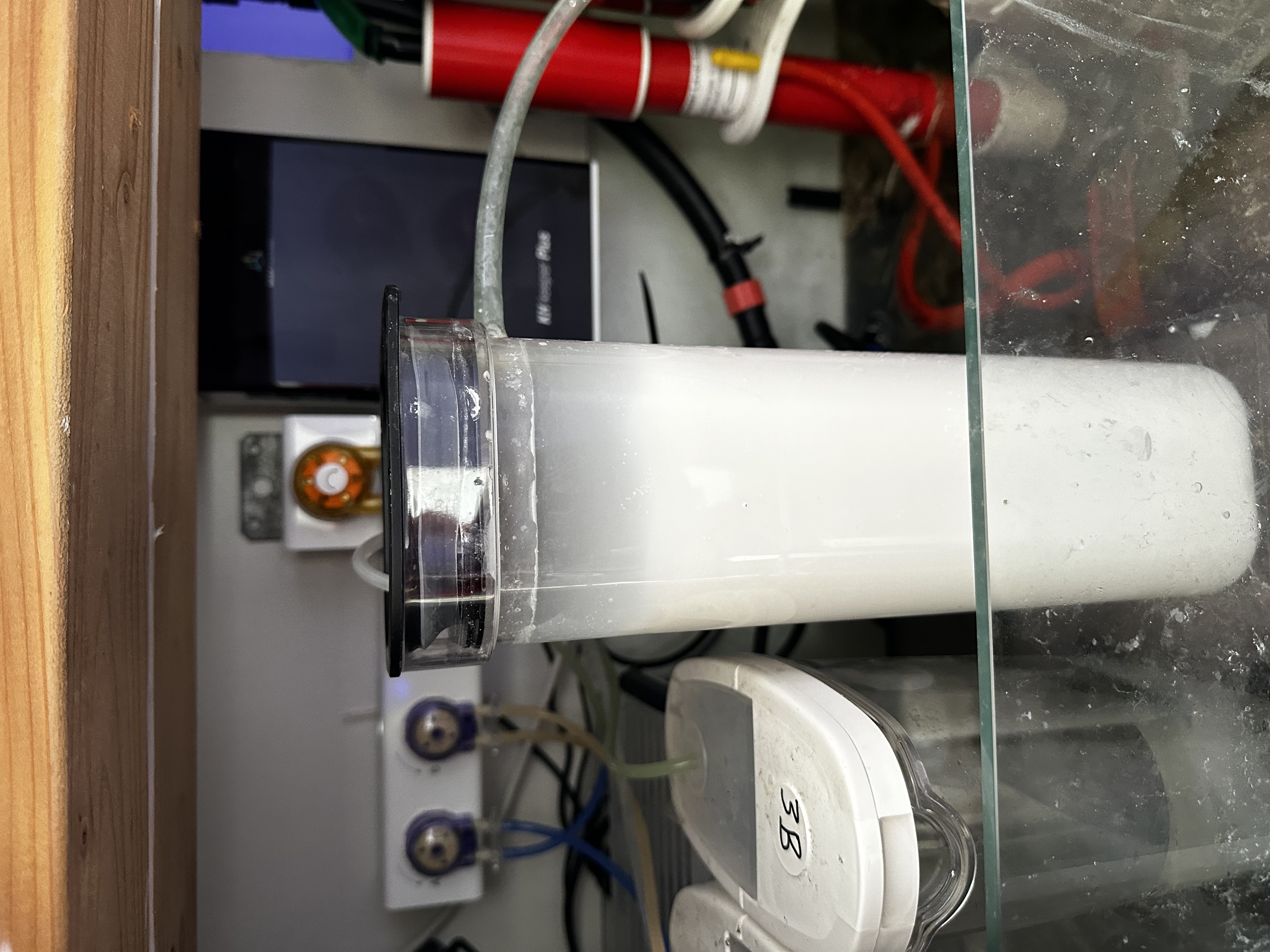 Dc pumpen (cirkulations/stirre/omrøringspumpen) Hvor sidder indsug og udtag i din kalkslur beholder? Indsug højt oppe og udblæs i bunden eller hvordan? Tænker selve pumpen er i et MEGA “hårdt” miljø, hvis den suger kalkslur med rundt?