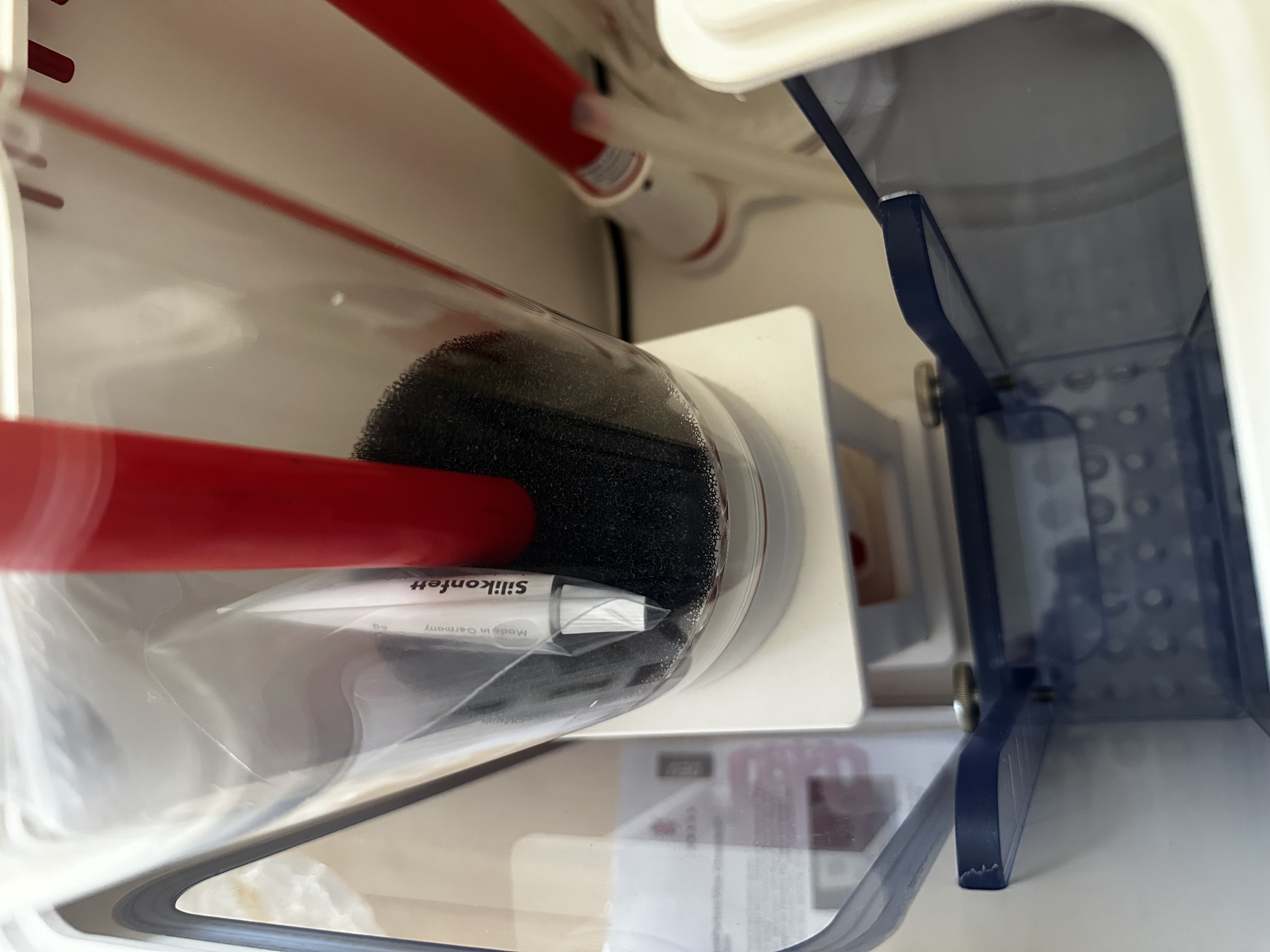 Har købt en lille høj beholder og pumpe til at cirkulere vandet . Den er justerbar fra 1 til 100%