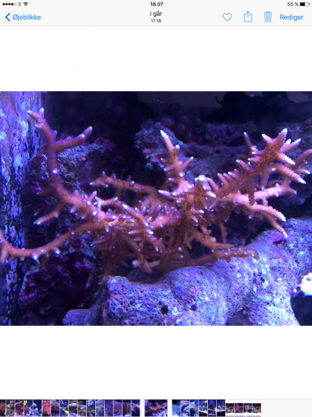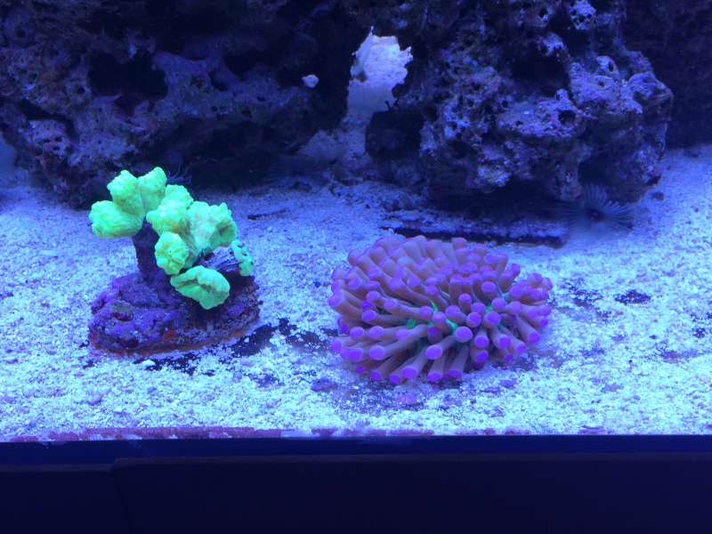 Jeg har den sidste måneders tid kørt med ren T5 lys, hvis du ser lidt tilbage i tråden kan du se at jeg på den konto var ved at brænde alle mine koraller af, da jeg ikke liiiige havde tænkt på den massive PAR de giver og ikke havde skruet ned for lys tiden. Pt køre jeg 5 timer med 6 rør og så 2 rør sol op/ned. Jeg skruer langsomt lidt op for tiden på de 6 rør.