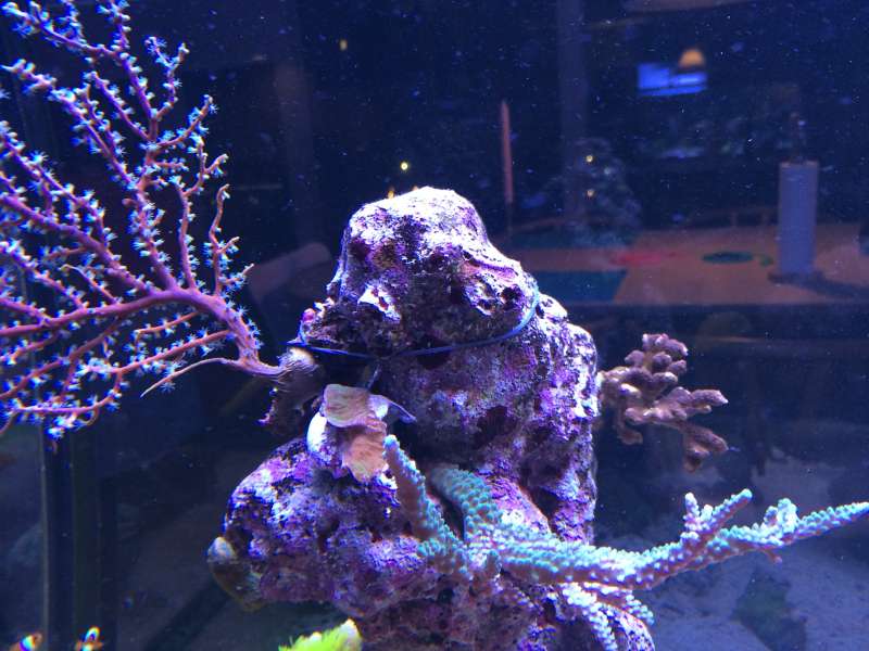 Hvis rørsneglen kan trække sig helt ind i skelettet på digitataen, så kan jeg anbefale lidt lim eller reefbond i hullet. Det bliver de rigtigt trætte af.