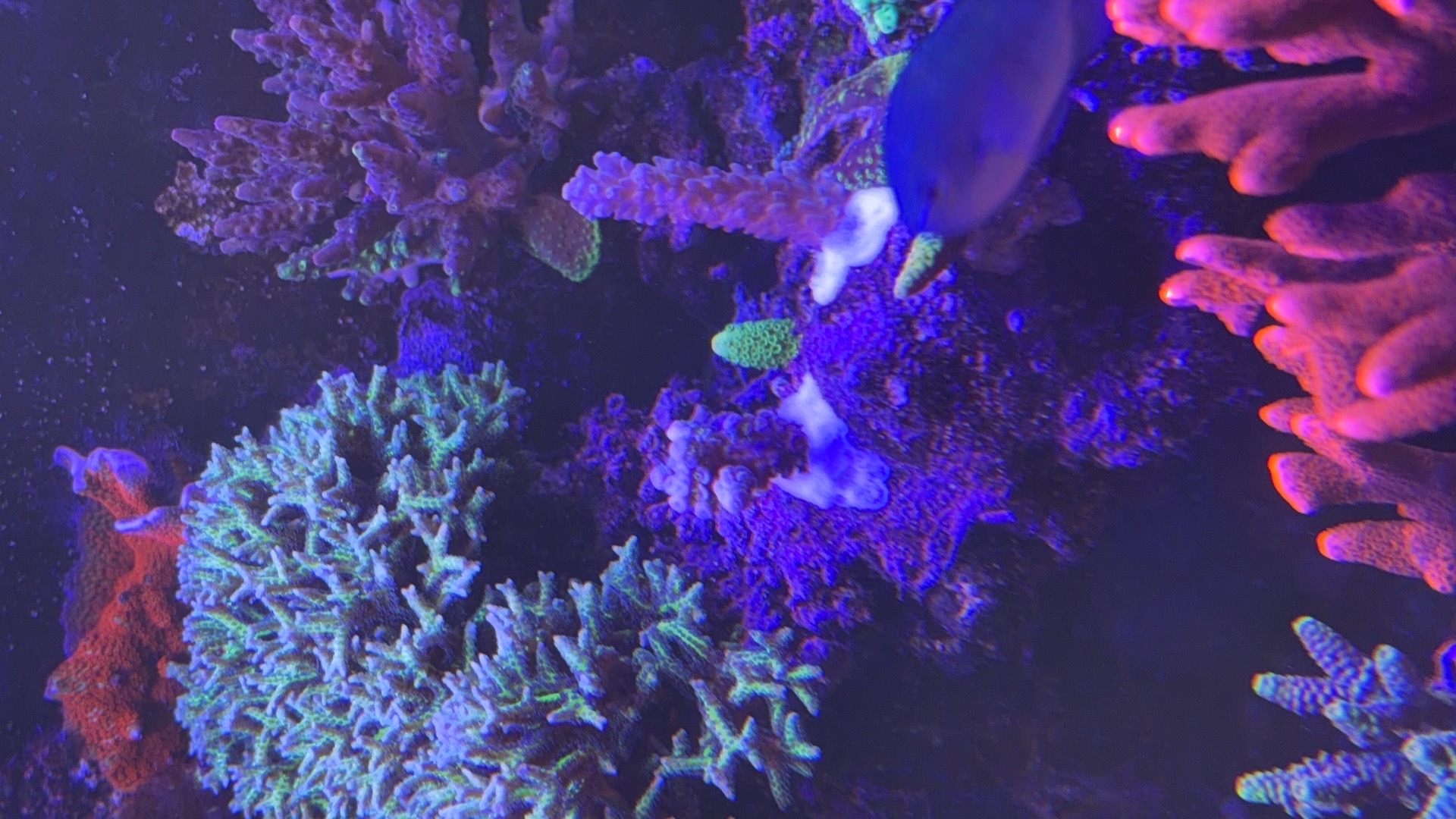Nogle a mine acroporaer er begyndt at få bedre farver og polyp udfoldelse om natten efter jeg opdagede min bummert med den forhøjet salt.