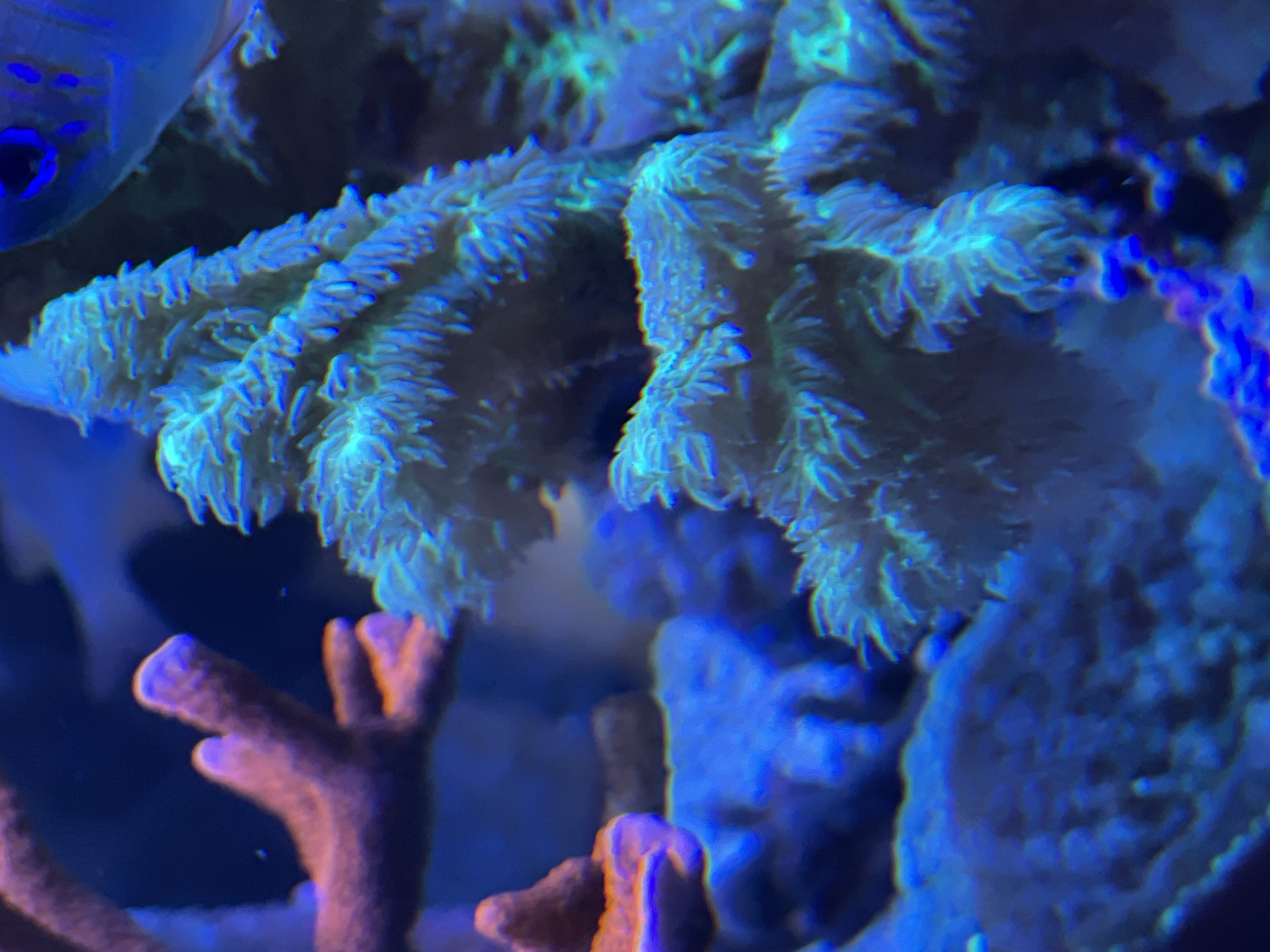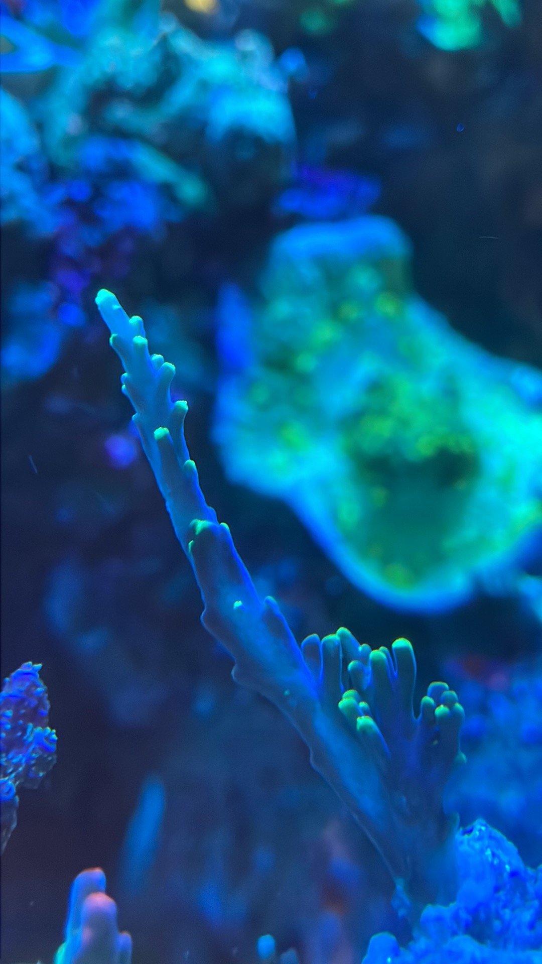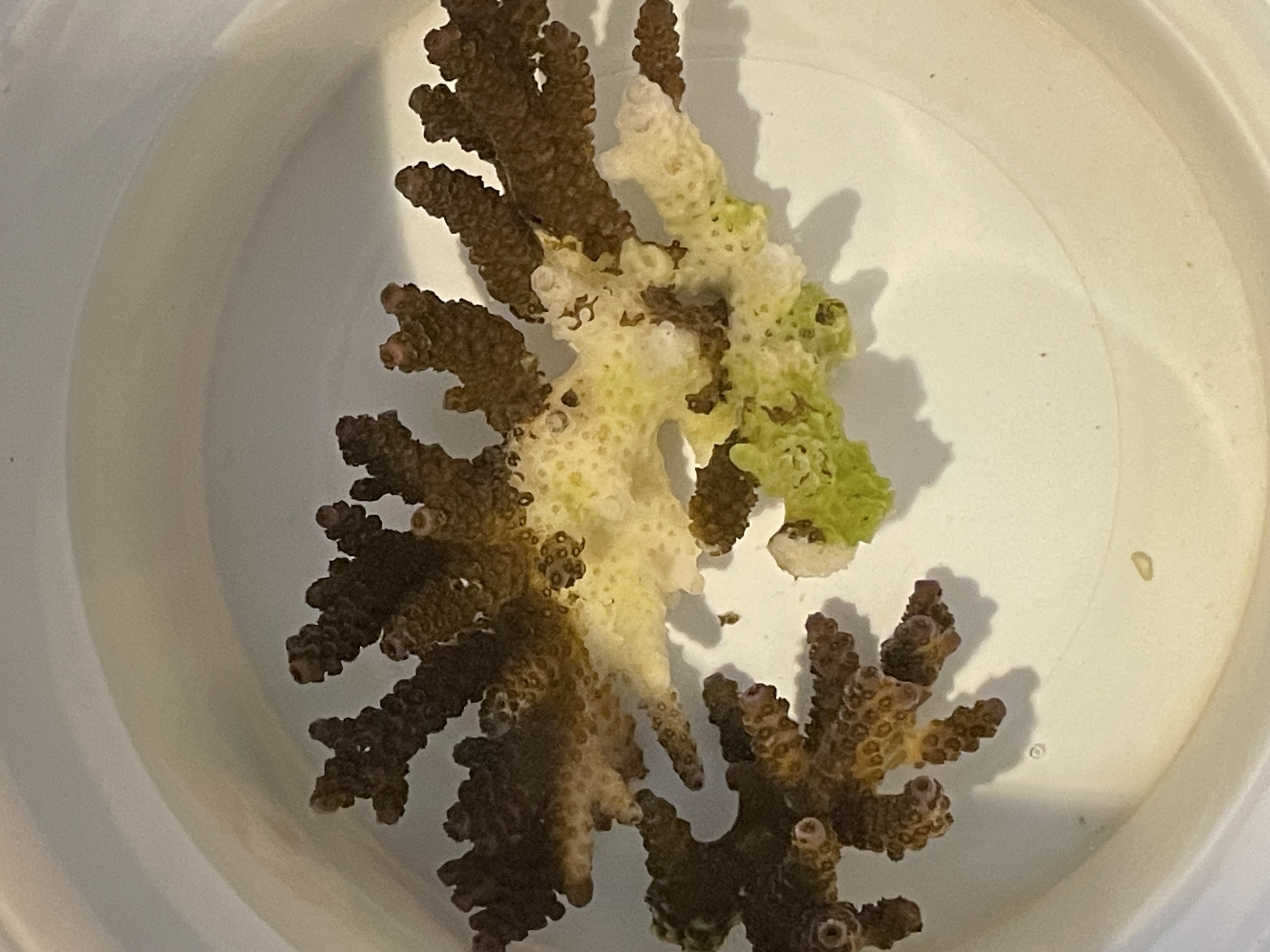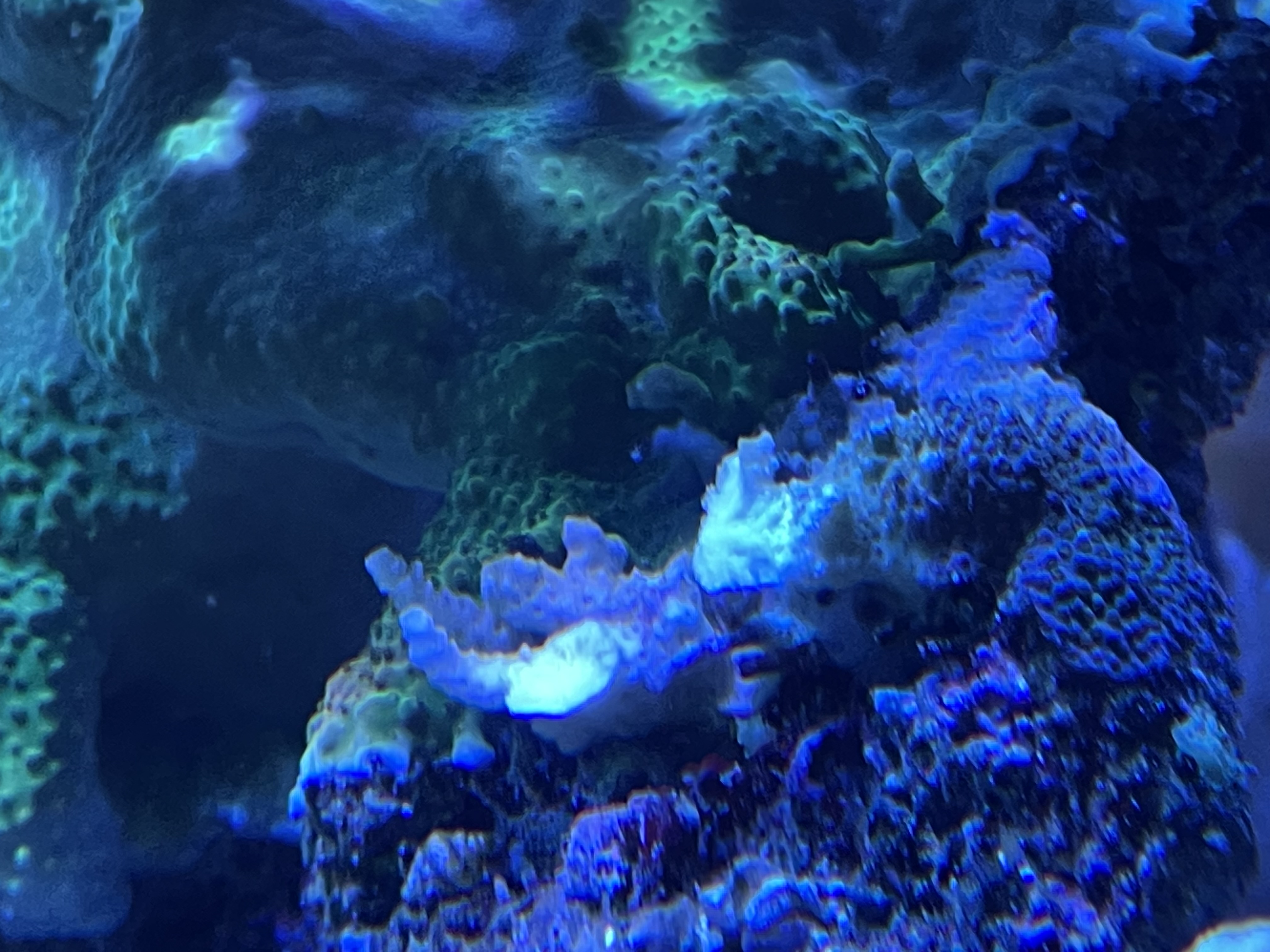 Lige nu er en acropora ved at dræbe en anden acropora koloni😔