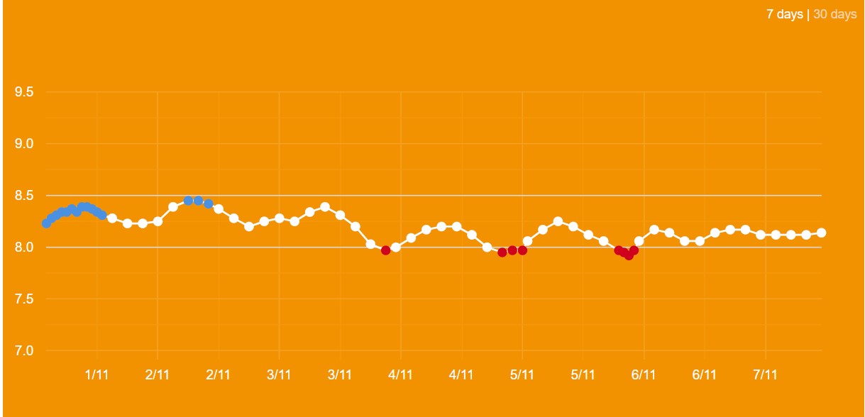 Her kl 1000 er dKH faldet med ca. 0,08 i timen, om natten😱