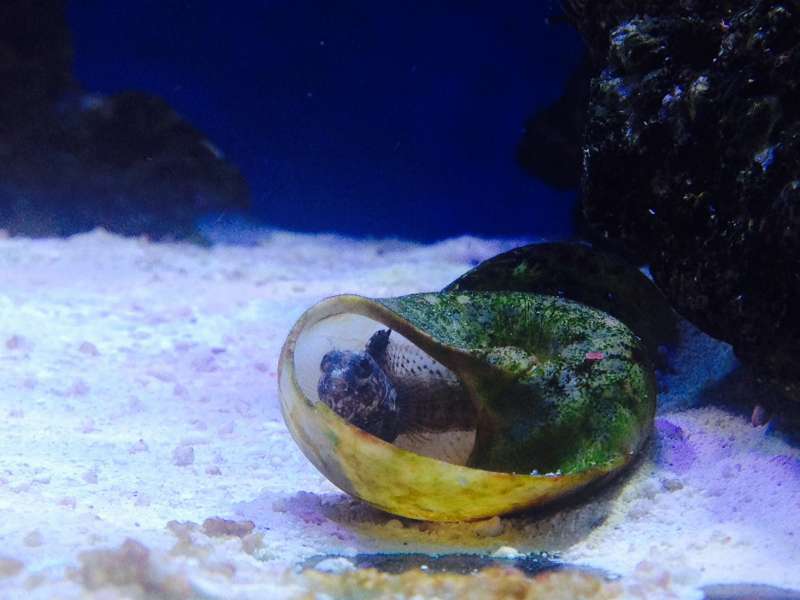 Så flyttede min Emblemaria padionis endelig over i sneglehuset, efter at have boet i et lille hul i stensætningen i nogle måneder.