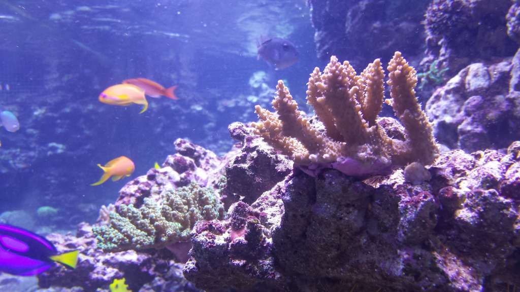 Jeg gav akvariet 2 doseringer af Aqua Forest, Coral Vitalizer i julen og det fortryder jeg i dag, alle mine LPS er blegnet rigtig meget (helt hvid er den ene) og så er min SSC som ses længst ude på spidsen blevet lige vel meget lys. Så nu fodre jeg korallerne hver aften med flydende zeoplankton, og fiskene får også en masse mad. På toppen har jeg sat lys-tiden ned i dag med 1½ time så der nu er 9½ times belysning, som jeg tester at have i en lidt mere blå tone.