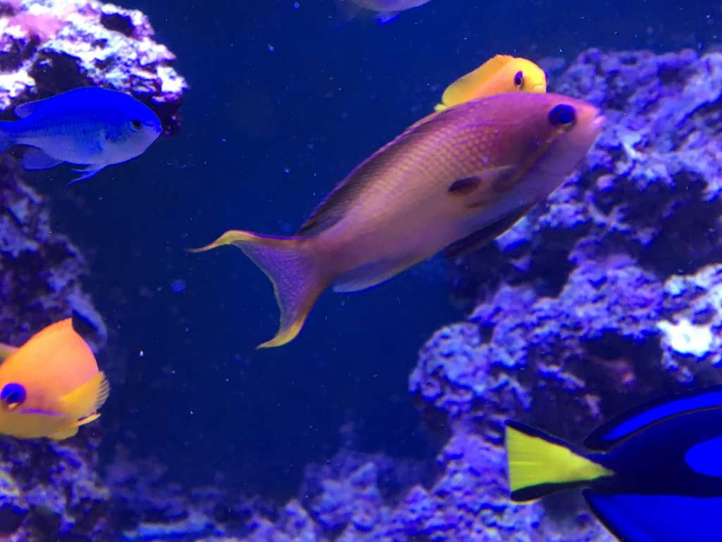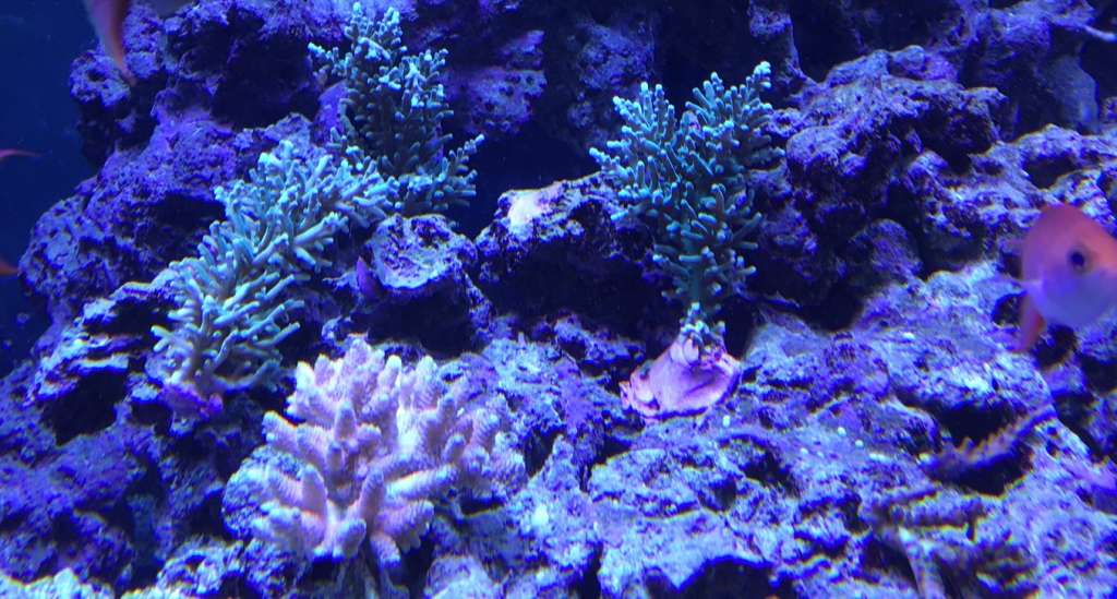 2) Forrest en A Tenius, den er sindsyg flot (ses ikke) men den er blå/blå med gult rundt polypperne, super nive. Bag den en ny SSC og bagerst hvad jeg håber er en millipora.