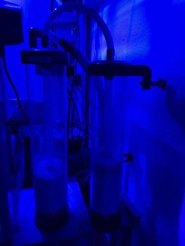 Metoden er at have to små reaktorer med mediet. Du sætter så skummeren til at trække luften gennem begge reaktorer som er tilsluttet i serie. Når den første begynder at blive blå/lilla , skifter du mediet i den og sætter den anden på ud som den yderste osv osv.IMG_2988.jpeg