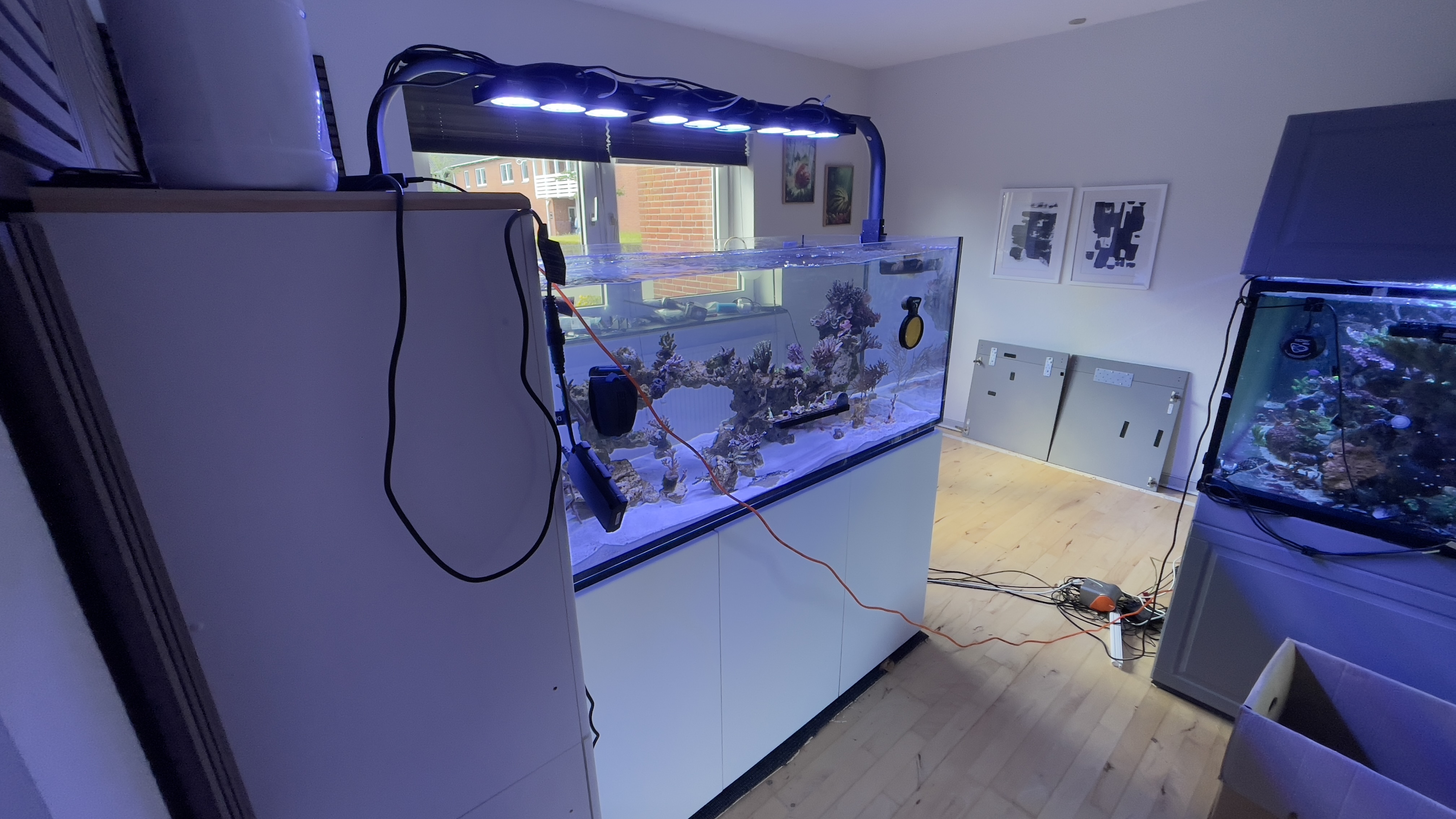 Med det er totalt uoverskuelig. 😢 Vi fik kun flyttet korallerne, lavet et midlertidigt sted og tømt akvarierne. Så nu handler det om teknik skabe osv i dag 🫣
