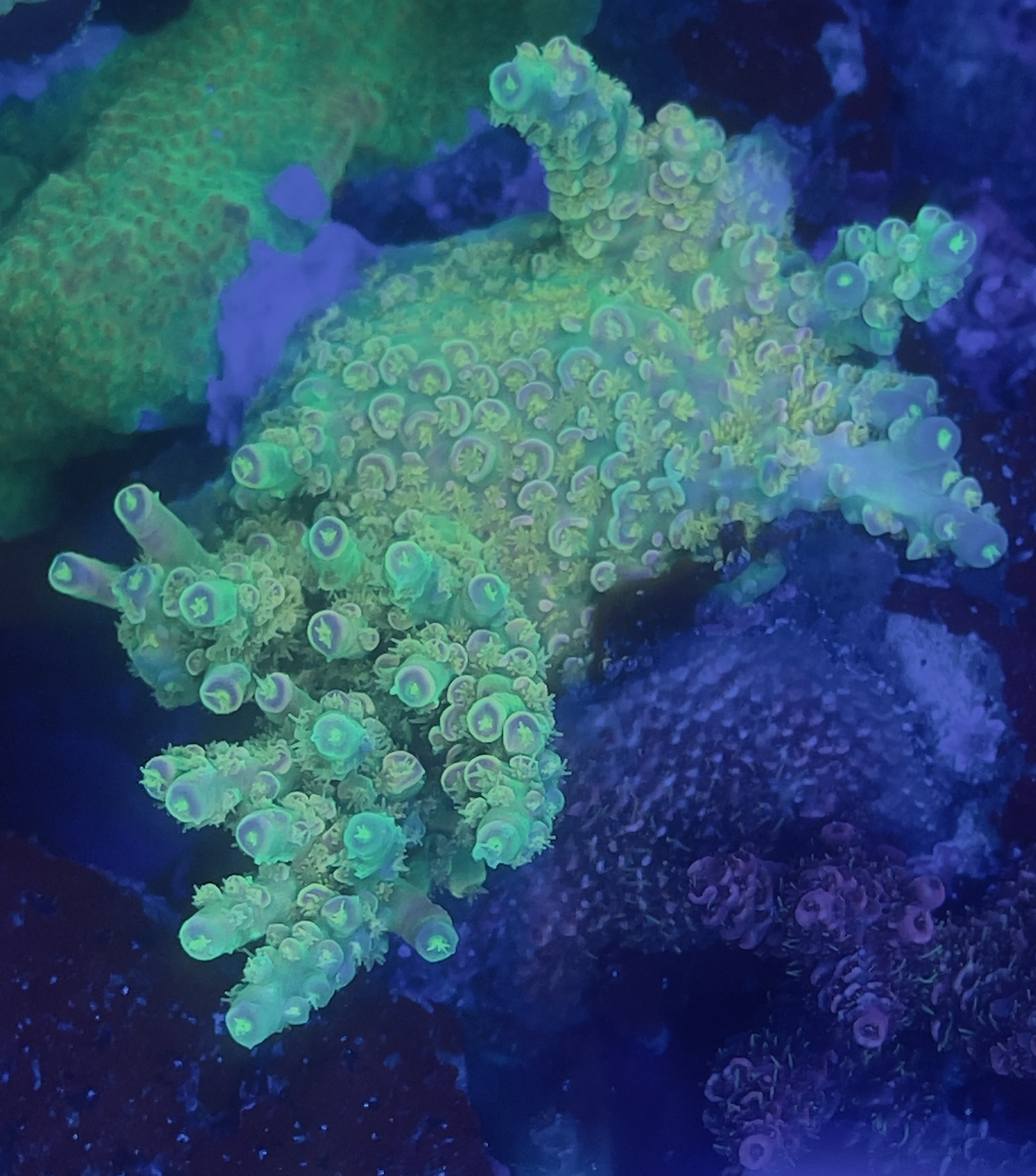 Acropora Millepora “SR Starry Night” Lille koloni. Mindre koloni lever i hovedakvariet