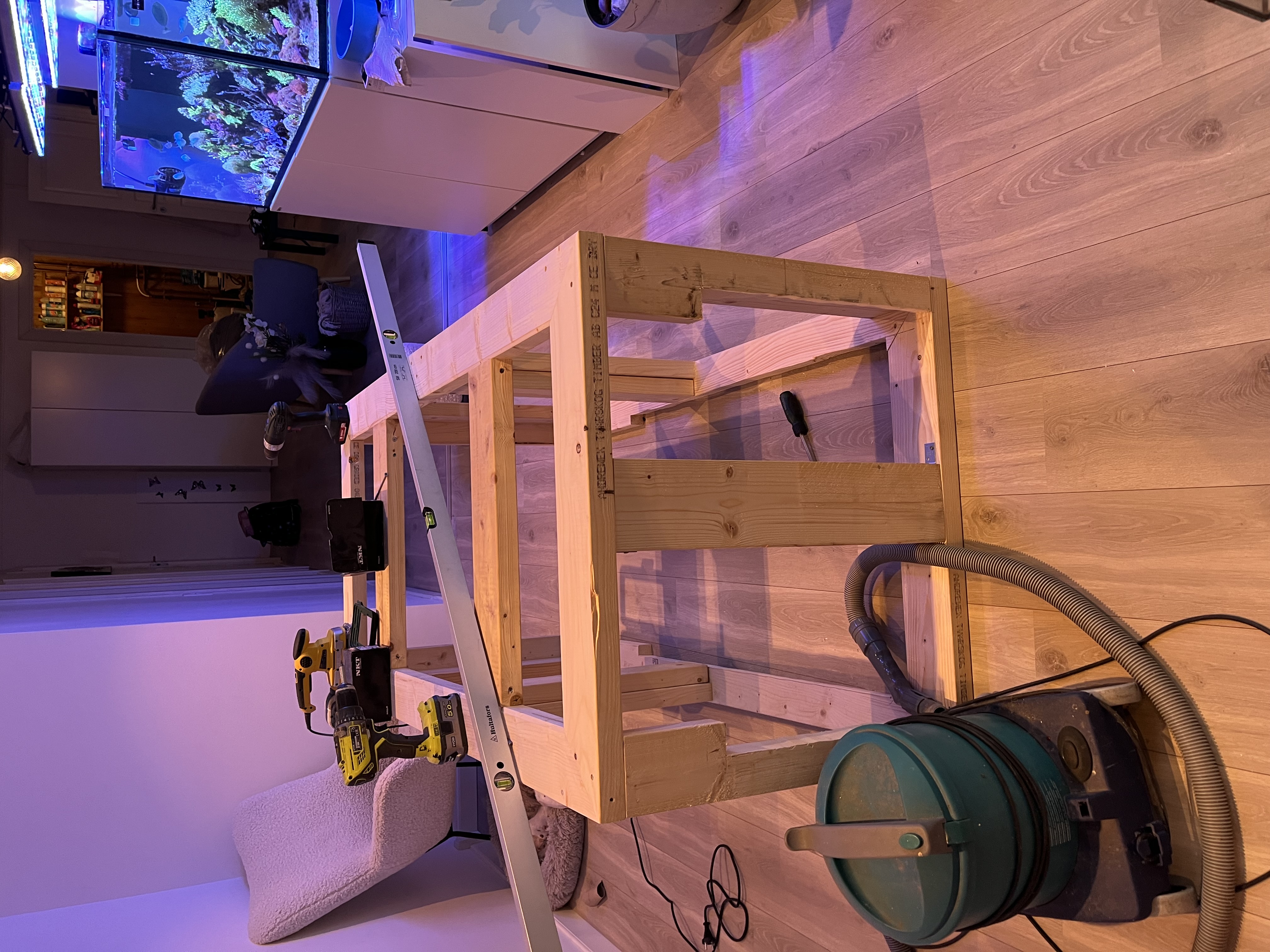akvariet er jo 160 cm lang og så stjæler det udvendige overløb jo lidt men borderet der er bygget er 180 cm langt, så måske kan kunne lave noget der måler 15 cm i bredde 90 cm i bredden og 20 cm i højden til noget refugium/frag ting i forlængelse af akvariet :beer: