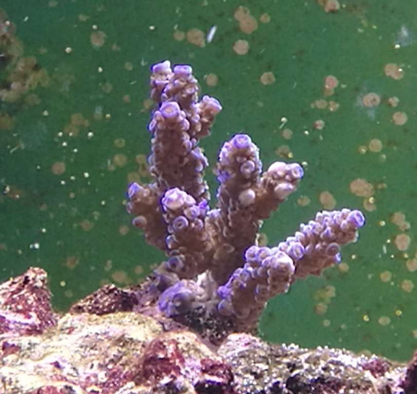 Den ene er gået mod det blå, super flot men det er svært at vange da den er bagerst i akvariet, denne står på 20 cm lige under en Sicce lampe.